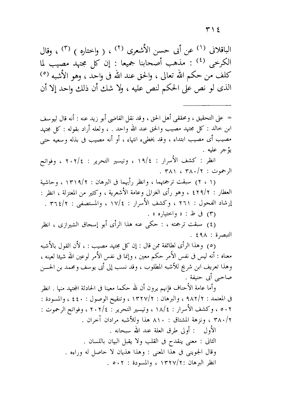 الباقلاني عن أبي حسن الأشعري، (واختاره)، وقال الكرخي: مذهب أصحابنا جميعاً: إن كل مجتهد مصيب لما كلف من حكم الله تعالى، والحق عند الله في واحد، وهو الأشبه الذي لو نص على الحكم لنص عليه، ولا شك أن ذلك واحد إلا أن