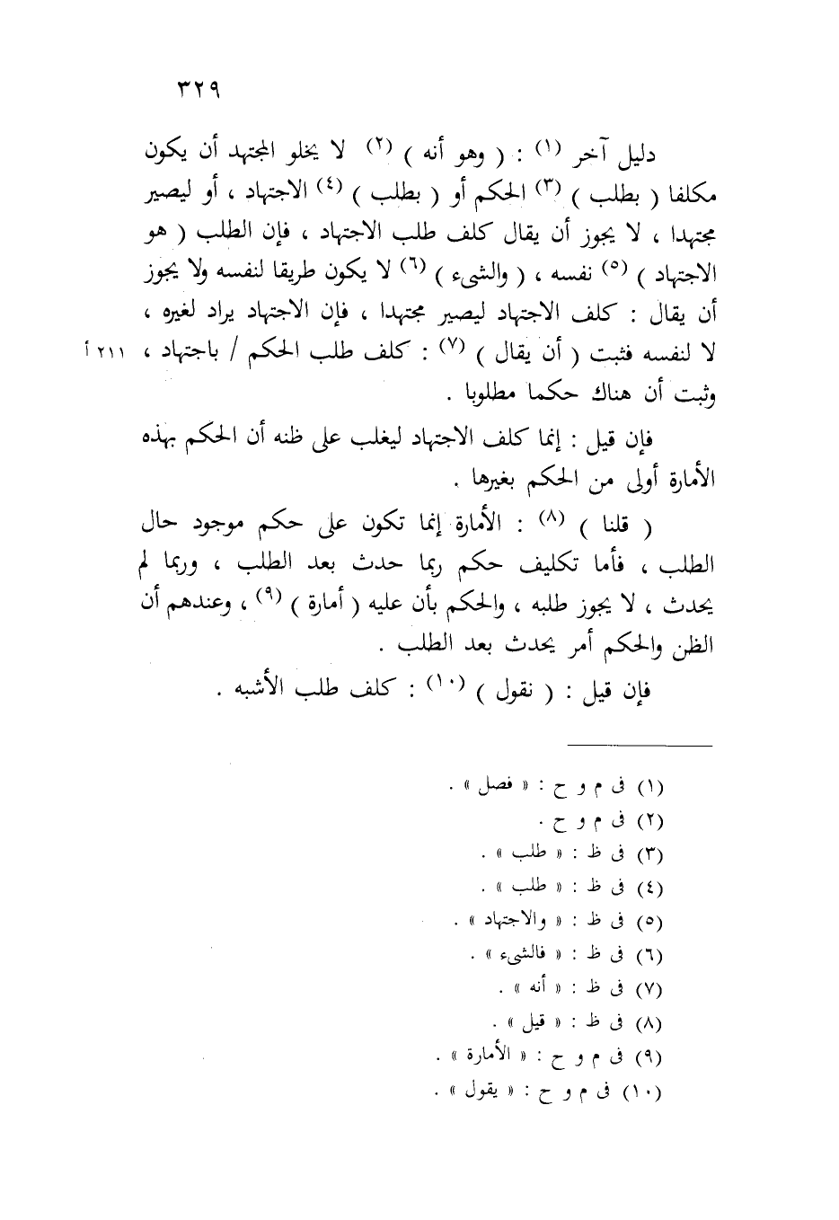 دليل آخر: (وهو أنه) لا يخلو المجتهد أن يكون مكلفاً (بطلب) الحكم أو (بطلب) الاجتهاد، أو ليصير مجتهداً، لا يجوز أن يقال كلف طلب الاجتهاد، فإن الطلب (هو الاجتهاد) نفسه، (والشيء) لا يكون طريقاً لنفسه ولا يجوز أن يقال: كلف الاجتهاد ليصير مجتهداً، فإن الاجتهاد يراد لغيره، لا لنفسه فثبت (أن يقال): كلف طلب الحكم/ ٢١١ أباجتهاد، وثبت أن هناك حكماً مطلوباً.