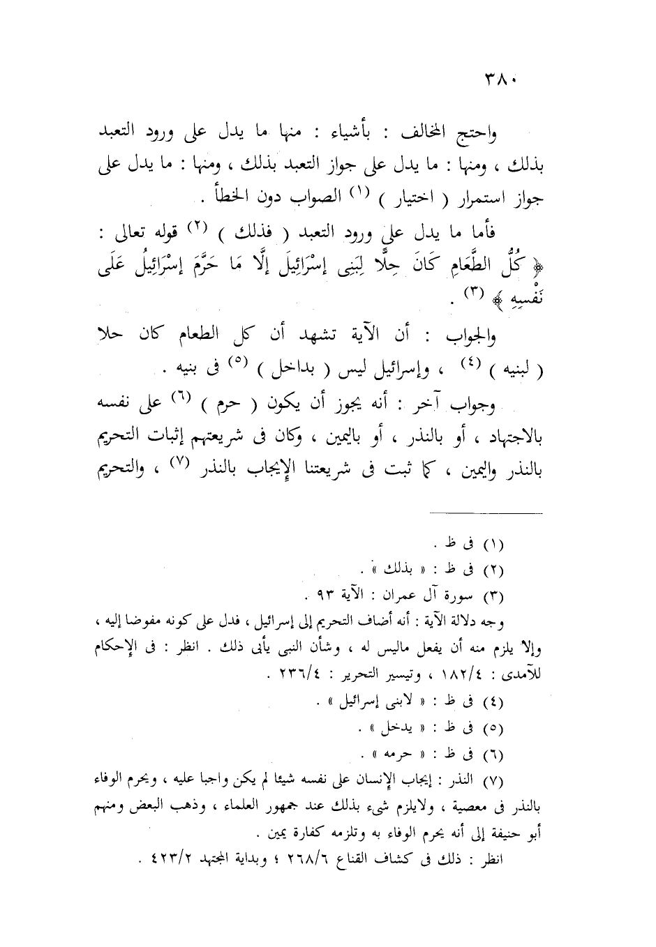 فأما ما يدل على ورود التعبد (فذلك) قوله تعالى: {كُلُّ الطَّعَامِ كَانَ حِلاًّ لِبَنِي إِسْرَائِيلَ إِلَاّ مَا حَرَّمَ إِسْرَائِيلُ عَلَى نَفْسِهِ}.