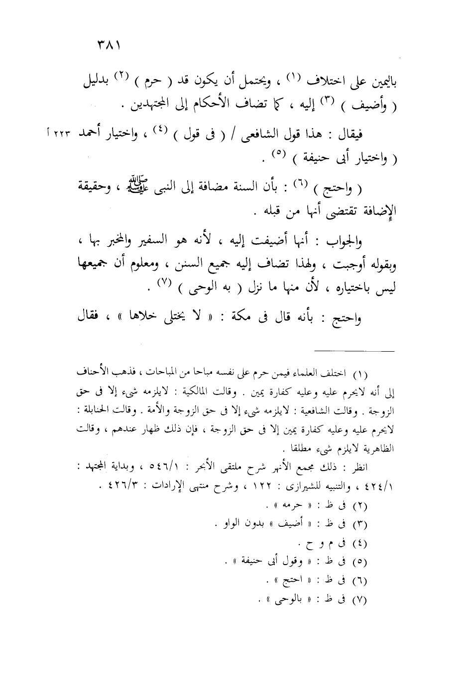 باليمين على اختلاف، ويحتمل أن يكون قد (حرم) بدليل (وأضيف) إليه، كما تضاف الأحكام إلى المجتهدين.