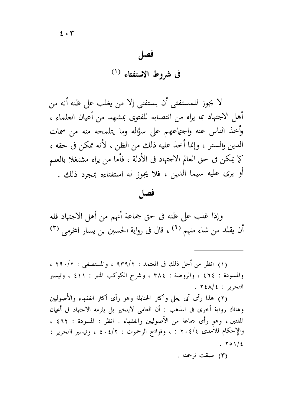 لا يجوز للمستفتي أن يستفتي إلا من يغلب على ظنه أنه من أهل الاجتهاد بما يراه من انتصابه للفتوى بمشهد من أعيان العلماء، وأخذ الناس عنه واجتماعهم على سؤاله وما يتلمحه منه من سمات الدين والستر، وإنما أخذ عليه ذلك من الظن، لأنه ممكن في حقه، كما يمكن في حق العالم الاجتهاد في الأدلة، فأما من يراه مشتغلاً بالعلم أو يرى عليه سيما الدين، فلا يجوز له استفتاءه بمجرد ذلك.