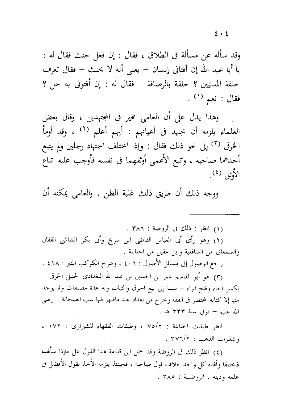 وهذا يدل على أن العامي مخير في المجتهدين، وقال بعضهم العلماء يلزمه أن يجتهد في أعيانهم: أيهم أعلم، وقد أومأ الخرقي إلى نحو ذلك فقال: وإذا اختلف اجتهاد رجلين ولم يتبع أحدهما صاحبه، واتبع الأعمى أوثقهما في نفسه فأوجب عليه اتباع الأوثق.