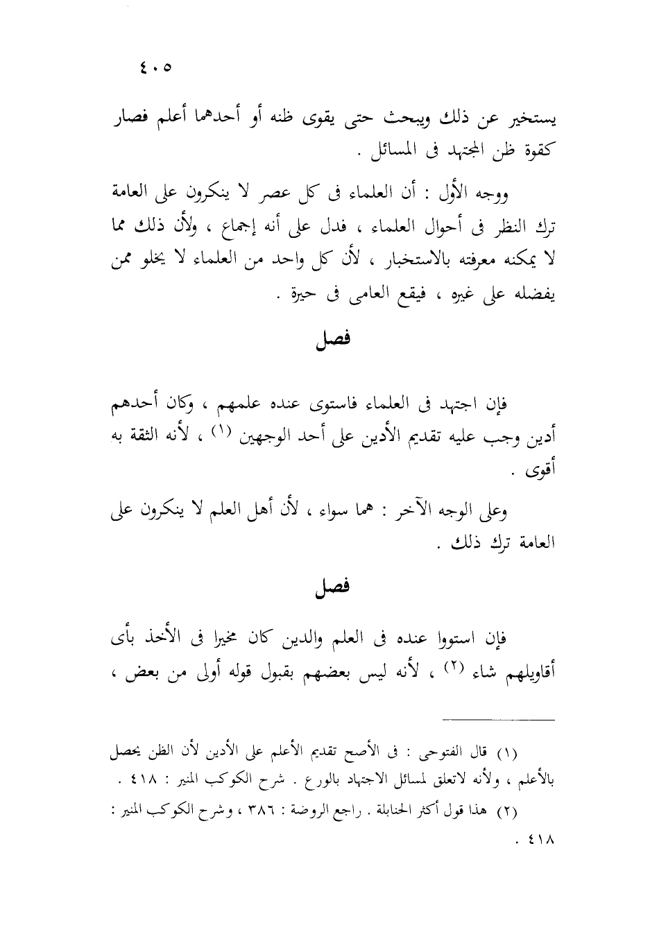 ووجه الأول: أن العلماء في كل عصر لا ينكرون على العامة ترك النظر في أحوال العلماء، فدل على أنه إجماع، ولأن ذلك مما لا يمكنه معرفته بالاستخبار، لأن كل واحد من العلماء لا يخلو ممن يفضله على غيره، فيقع العامي في حيرة.
