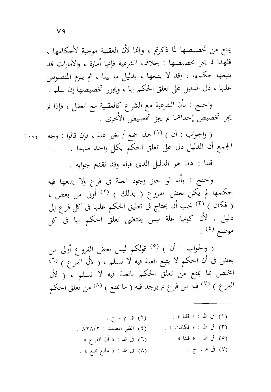 واحتج: بأنه لو جاز وجود العلة في فرع ولا يتبعها فيه حكمها لم يكن بعض الفروع (بذلك) أولى من بعض، (فكان) يجب أن يحتاج في تعليق الحكم عليها في كل فرع إلى دليل، لأن كونها علة ليس يقتضي تعلق الحكم بها في كل موضع.