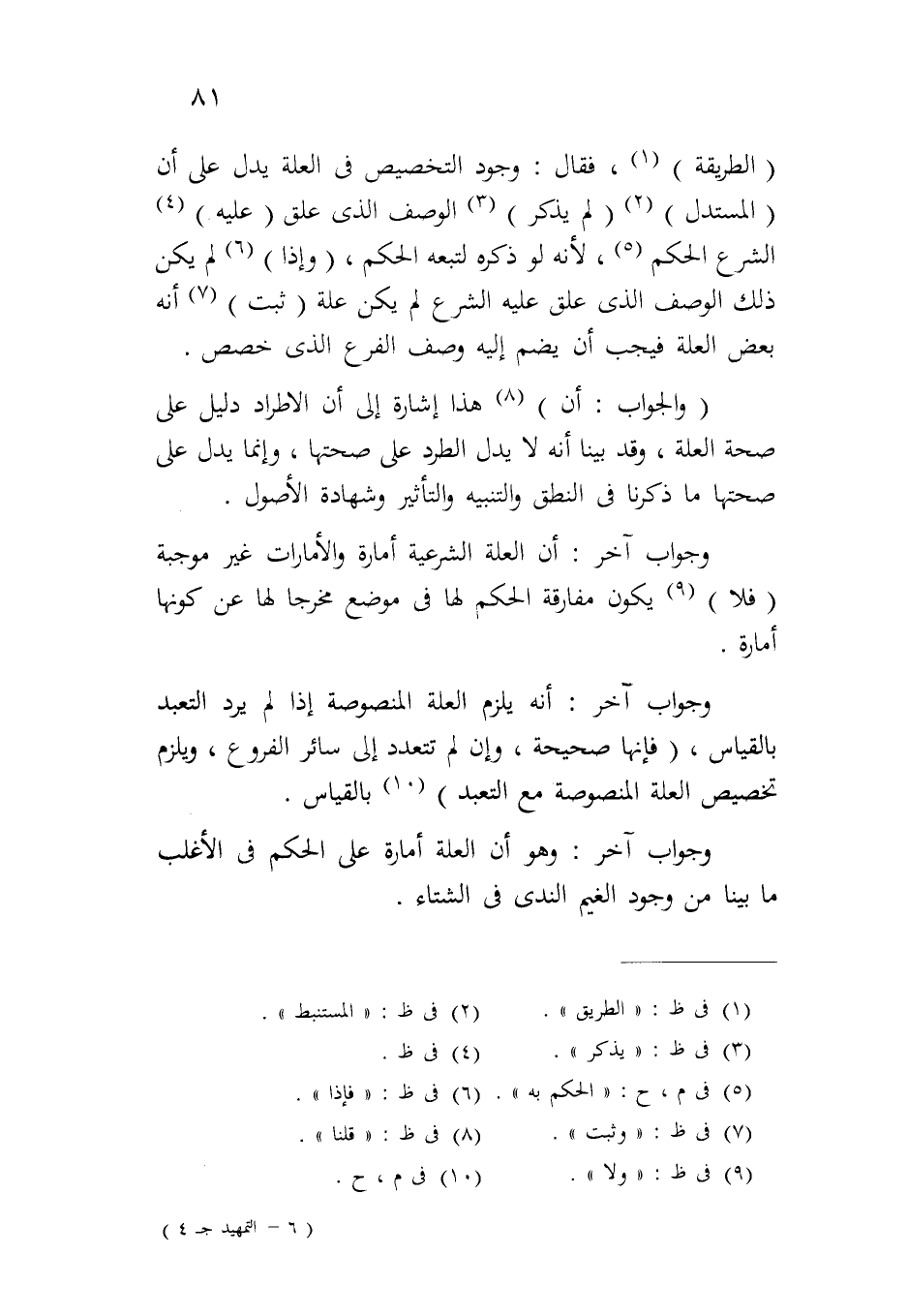 وجواب آخر: أن العلة الشرعية أمارة والأمارات غير موجبة (فلا) يكون مفارقة الحكم لها في موضع مخرجاً لها عن كونها أمارة.