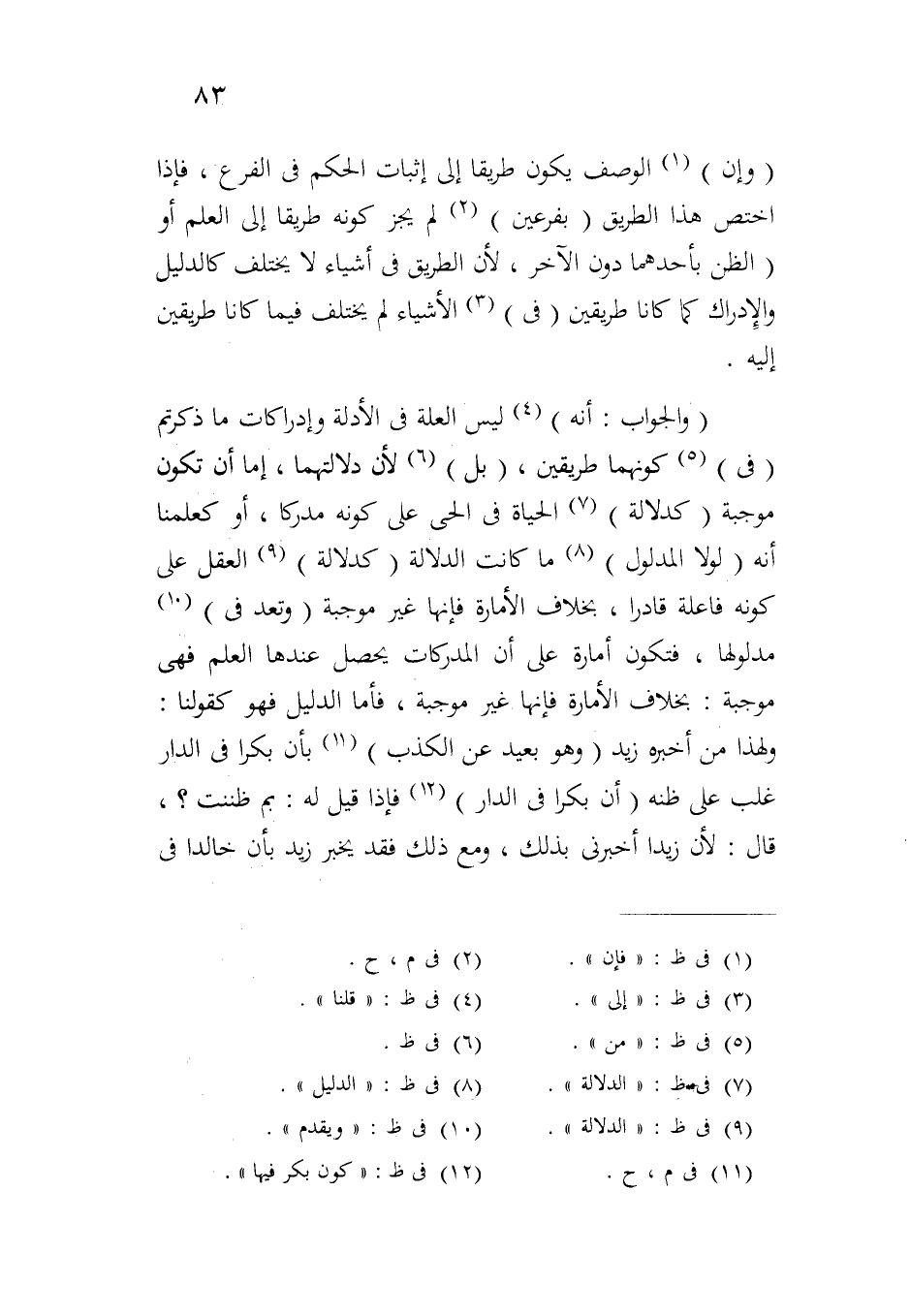 (والجواب: أنه) ليس العلة في الأدلة وإدراكات ما ذكرتم (في) كونهما طريقين، (بل) لأن دلالتهما، إما أن تكون موجبة (كدلالة) الحياة في الحي على كونه مدركاً، أو كعلمنا أنه (لولا المدلول) ما كانت الدلالة (كدلالة) العقل على كونه فاعلة قادراً، بخلاف الأمارة فإنها غير موجبة (وتعد في) مدلولها، فتكون أمارة على أن المدركات يحصل عندها العلم فهي موجبة: بخلاف الأمارة فإنها غير موجبة، فأما الدليل فهو كقولنا: ولهذا من أخبره زيد (وهو بعيد عن الكذب) بأن بكراً في الدار غلب على ظنه (أن بكراً في الدار) فإذا قيل له: بم ظننت؟، قال: لأن زيداً أخبرني بذلك، ومع ذلك فقد يخبر زيد بأن خالداً في