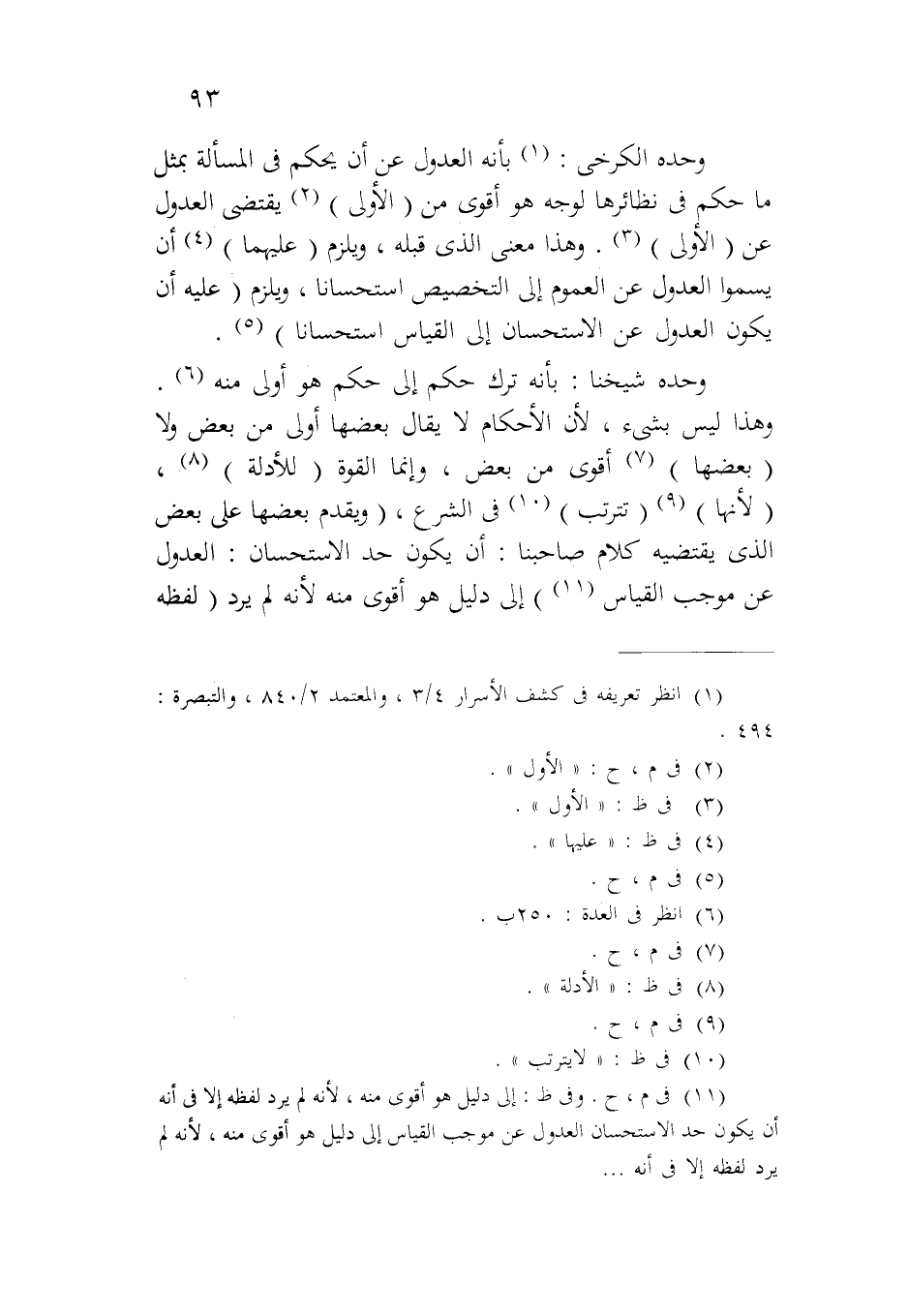 وحده شيخنا: بأنه ترك حكم إلى حكم هو أولى منه. وهذا ليس بشيء، لأن الأحكام لا يقال بعضها أولى من بعض ولا (بعضها) أقوى من بعض، وإنما القوة (للأدلة)، (لأنها) (تترتب) في الشرع، (ويقدم بعضها على بعض الذي يقتضيه كلام صاحبنا: أن يكون حد الاستحسان: العدول عن موجب القياس) إلى دليل هو أقوى منه لأنه لم يرد (لفظه