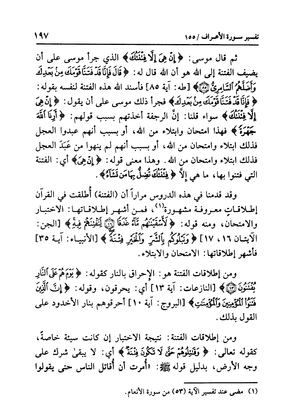 ثم قال موسى: {إِنْ هِيَ إِلاَّ فِتْنَتُكَ} الذي جرأ موسى على أن يضيف الفتنة إلى الله هو أن الله قال له: {فَإِنَّا قَدْ فَتَنَّا قَوْمَكَ مِن بَعْدِكَ وَأَضَلَّهُمُ السَّامِرِيُّ (85)} [طه: آية 85] فأسند الله هذه الفتنة لنفسه بقوله: {فَإِنَّا قَدْ فَتَنَّا قَوْمَكَ مِن بَعْدِكَ} فجرأ ذلك موسى على أن يقول: {إِنْ هِيَ إِلاَّ فِتْنَتُكَ} سواء قلنا: إنَّ الرجفة أخذتهم بسبب قولهم: {أَرِنَا اللَّهَ جَهْرَةً} فهذا امتحان وابتلاء من الله، أو بسبب أنهم عبدوا العجل فذلك ابتلاء وامتحان من الله، أو بسبب أنهم لم ينهوا من عَبَدَ العجل فذلك ابتلاء وامتحان من الله. وهذا معنى قوله: {إِنْ هِيَ} أي: الفتنة التي فتنوا بها، ما هي إِلاَّ {فِتْنَتُكَ تُضِلُّ بِهَا مَن تَشَاء}.