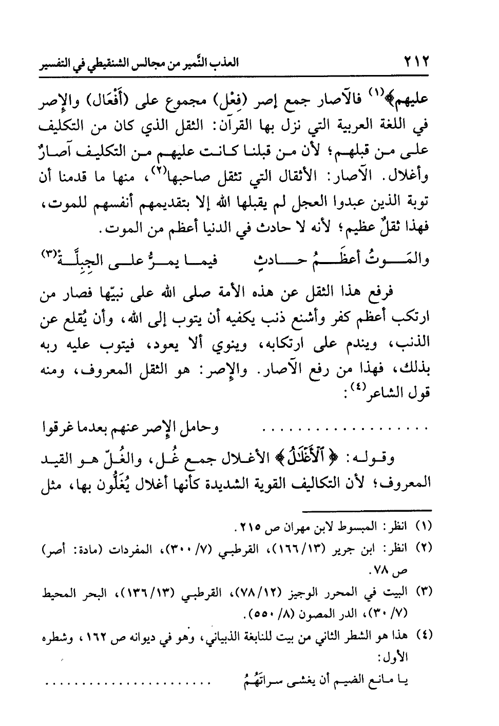 (¬2) انظر: ابن جرير (13/ 166)، القرطبي (7/ 300)، المفردات (مادة: أصر) ص 78.