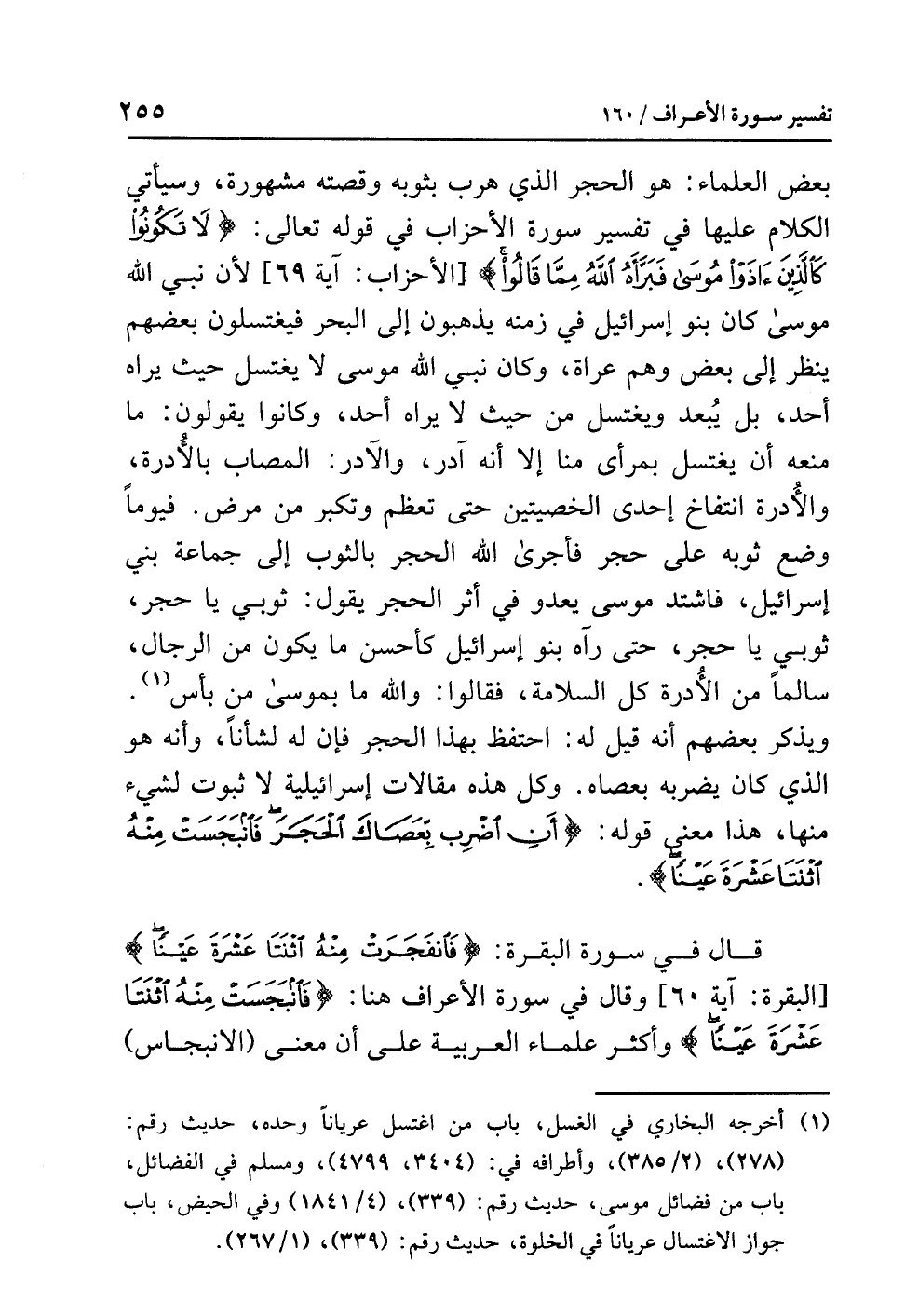 (¬1) أخرجه البخاري في الغسل، باب من اغتسل عريانًا وحده، حديث رقم: (278)، (2/ 385) وأطرافه: في (3404، 4799). ومسلم في الفضائل، باب من فضائل موسى، حديث رقم: (339)، (4/ 1841) وفي الحيض، باب جواز الاغتسال عريانًا في الخلوة، حديث ر قم: (339) (1/ 267).