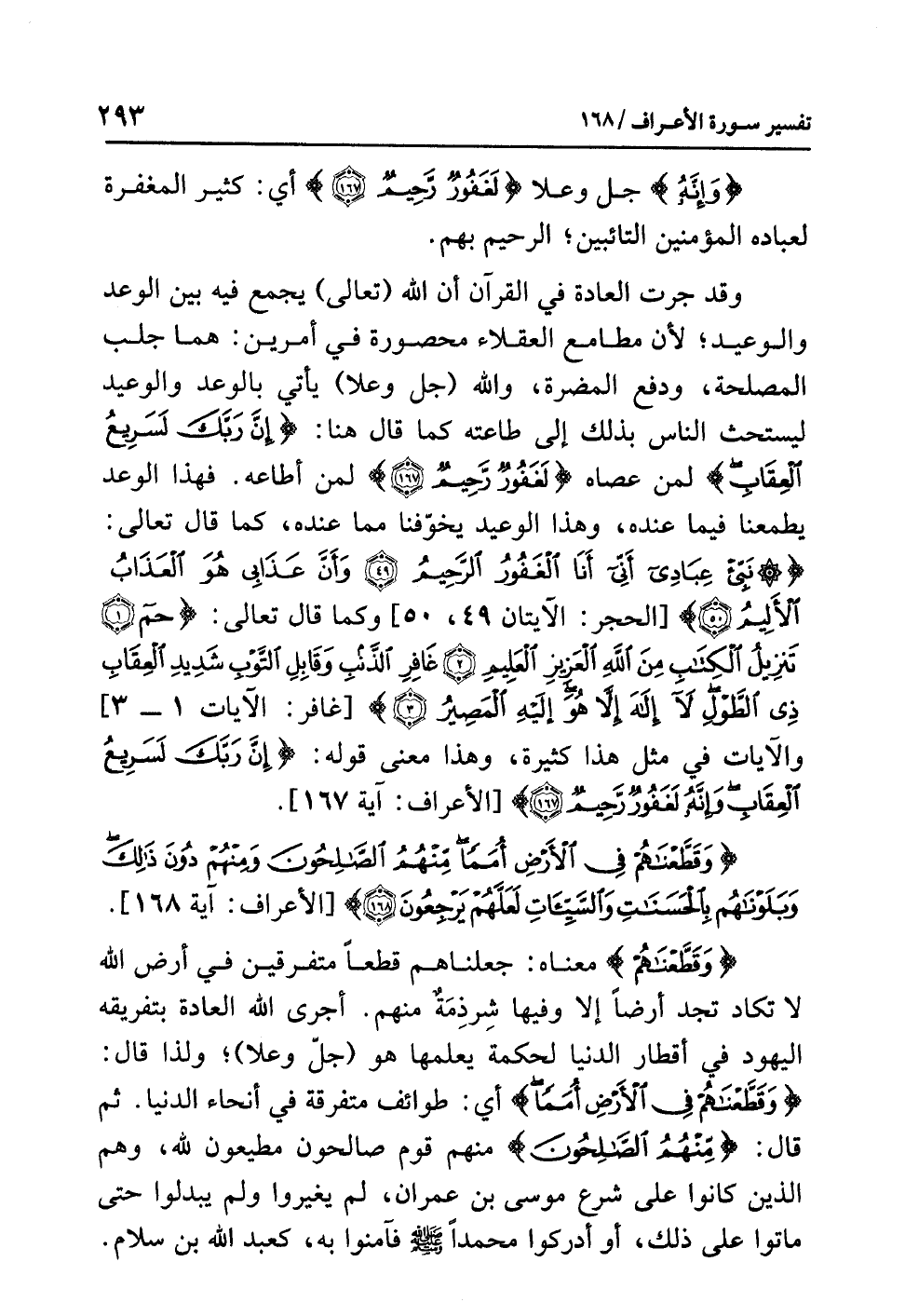 {وَقَطَّعْنَاهُمْ فِي الأَرْضِ أُمَمًا مِّنْهُمُ الصَّالِحُونَ وَمِنْهُمْ دُونَ ذَلِكَ وَبَلَوْنَاهُمْ بِالْحَسَنَاتِ وَالسَّيِّئَاتِ لَعَلَّهُمْ يَرْجِعُونَ (168)} [الأعراف: آية 168].