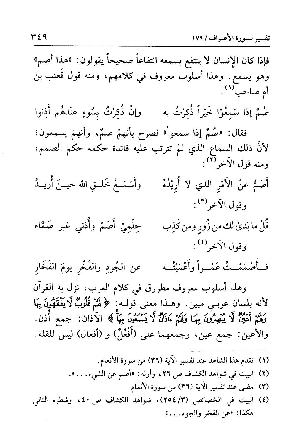 فإذا كان الإنسان لا ينتفع بسمعه انتفاعًا صحيحًا يقولون: «هذا أصم» وهو يسمع. وهذا أسلوب معروف في كلامهم، ومنه قول قَعنب بن أم صاحب (¬1):