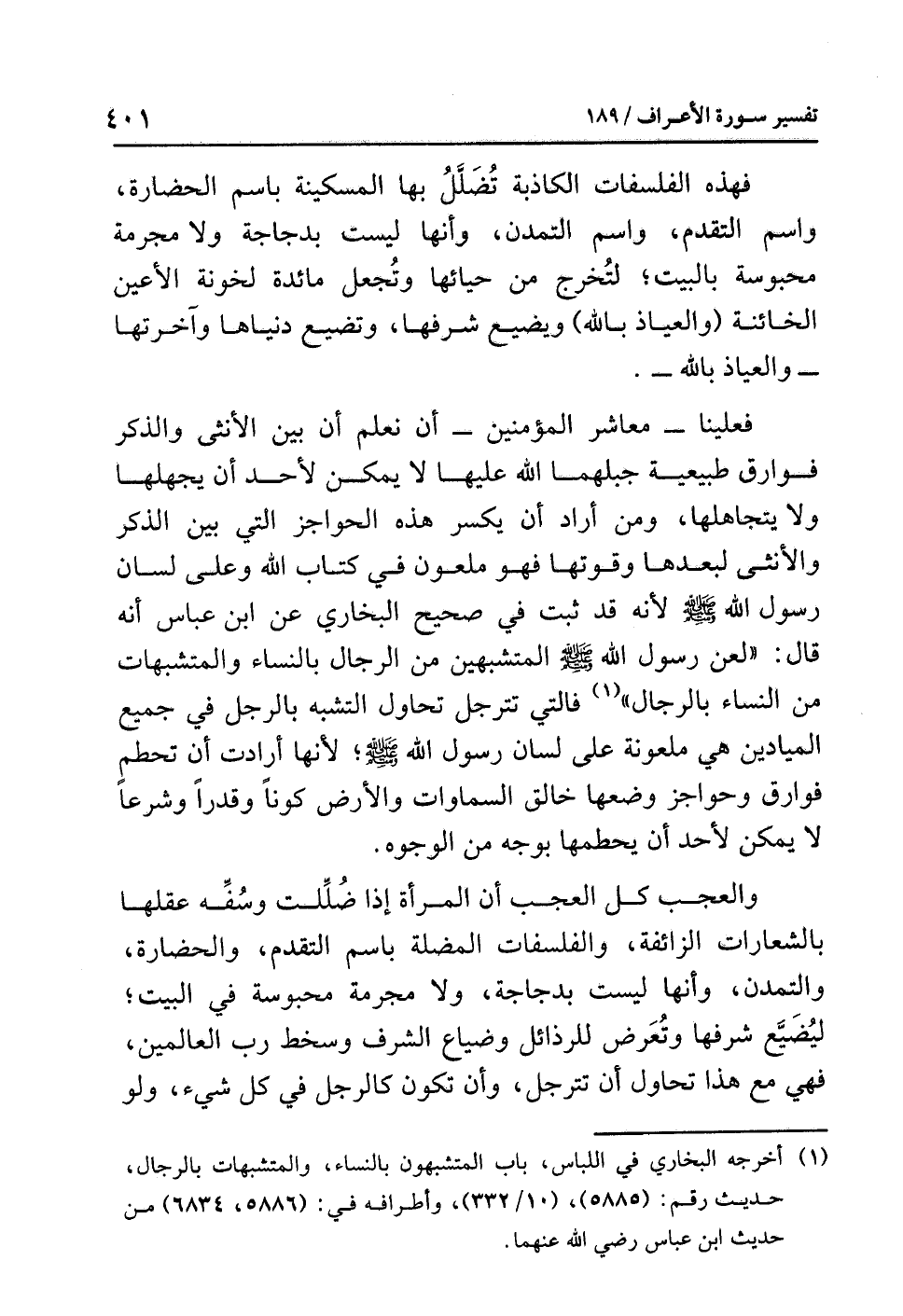(¬1) أخرجه البخاري في اللباس، باب المتشبهين بالنساء والمتشبهات بالرجال، حديث رقم (5885)، (10/ 332). وأطرافه في (5886، 6834) من حديث ابن عباس رضي الله عنهما.