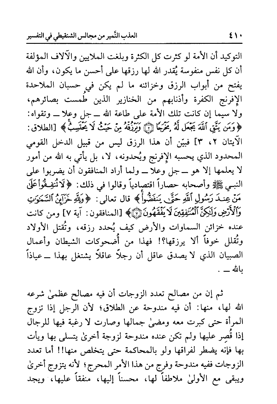 التوكيد أن الأمة لو كثرت كل الكثرة وبلغت الملايين والآلاف المؤلفة أن كل نفس منفوسة يُقدر الله لها رزقها على أحسن ما يكون، وأن الله يفتح من أبواب الرزق وخزائنه ما لم يكن في حسبان الملاحدة الإفرنج الكفرة وأذنابهم من الخنازير الذين طُمست بصائرهم، ولا سيما إن كانت تلك الأمة على طاعة الله - جل وعلا - وتقواه: {وَمَن يَتَّقِ اللَّهَ يَجْعَل لَّهُ مَخْرَجًا (2) وَيَرْزُقْهُ مِنْ حَيْثُ لاَ يَحْتَسِبُ} [الطلاق: الآيتان 2، 3] فبيّن أن هذا الرزق ليس من قبيل الدخل القومي المحدود الذي يحسبه الإفرنج ويُحدونه، لا، بل يأتي به الله من أمور لا يعلمها إلا هو - جل وعلا - ولما أراد المنافقون أن يضربوا على النبي صلى الله عليه وسلم وأصحابه حصارًا اقتصاديًّا وقالوا في ذلك: {لاَ تُنفِقُوا عَلَى مَنْ عِندَ رَسُولِ اللَّهِ حَتَّى يَنفَضُّوا} قال تعالى: {وَللَّهِ خَزَائِنُ السَّمَاوَاتِ وَالأَرْضِ وَلَكِنَّ الْمُنَافِقِينَ لاَ يَفْقَهُونَ} [المنافقون: آية 7] ومن كان عنده خزائن السماوات والأرض كيف يُحدد رزقه، وتقتل الأولاد وتقلل خوفًا ألا يرزقها؟! فهذا من أُضحوكات الشيطان وأعمال الصبيان الذي لا يصدق عاقل أن رجلاً عاقلاً يشتغل بهذا، عياذًا بالله.