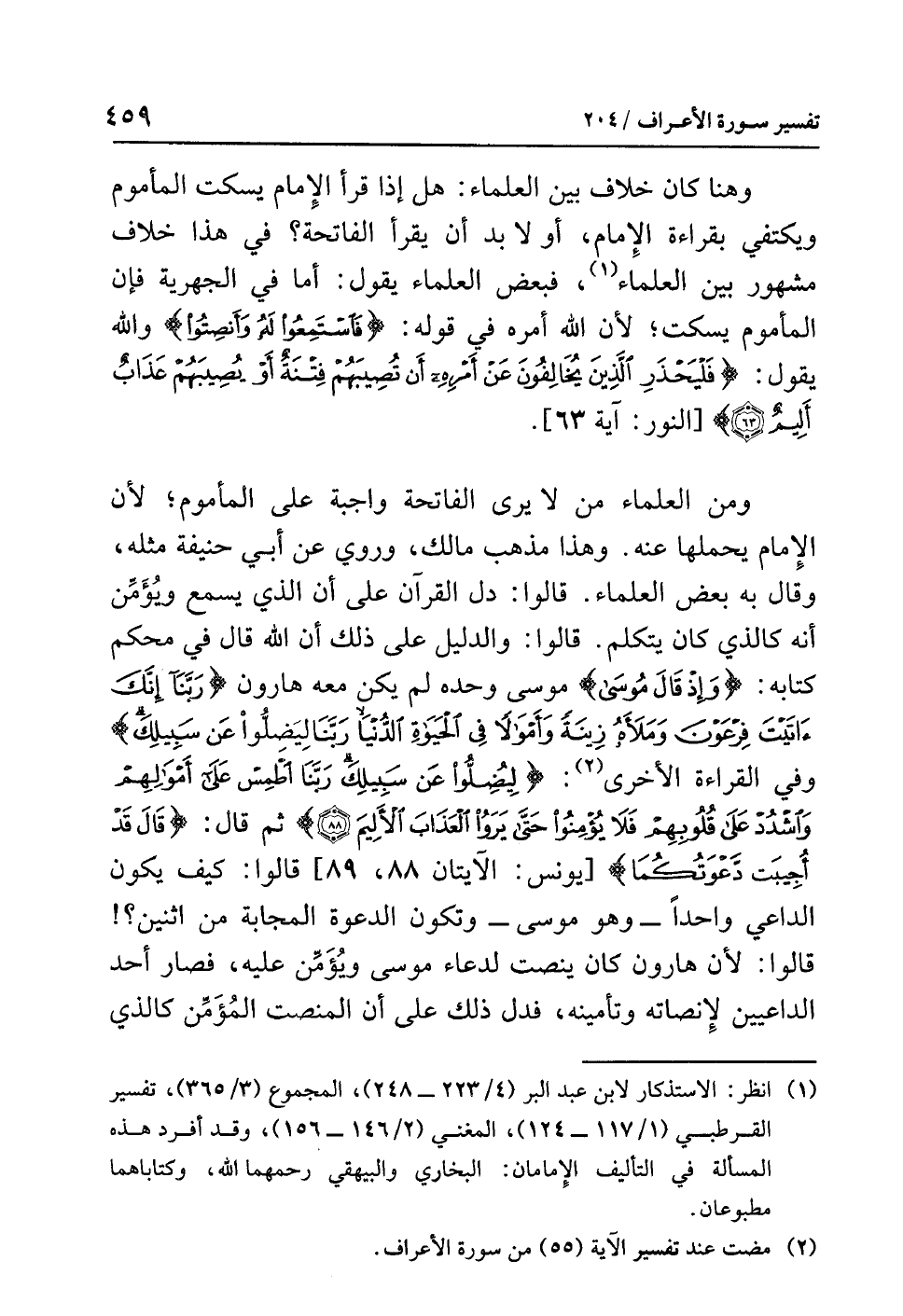 (¬1) انظر: الاستذكار لابن عبد البر (4/ 223 - 248)، المجموع (3/ 365)، تفسير القرطبي (1/ 117 - 124)، المغني (2/ 146 - 156) وقد أفرد هذه المسألة في التأليف الإمامان: البخاري والبيهقي رحمهما الله، وكتاباهما مطبوعان.