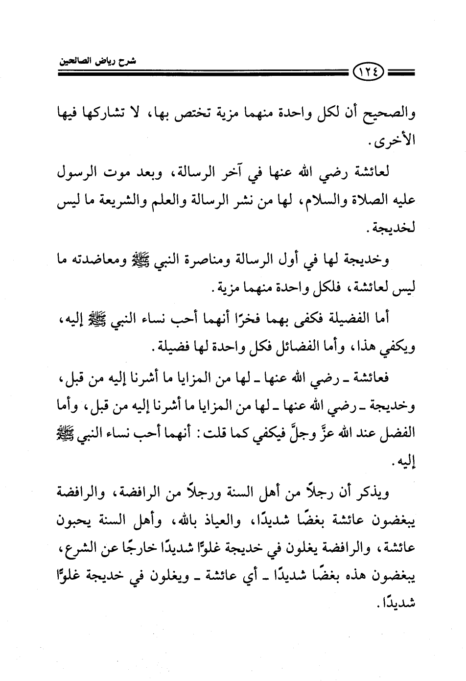 والصحيح أن لكل واحدة منهما مزية تختص بها، لا تشاركها فيها الأخرى فلعائشة رضي الله عنها في آخر الرسالة وبعد موت الرسول عليه الصلاة والسلام من نشر الرسالة والعلم والشريعة ما ليس لخديجة وخديجة لها في أول الرسالة ومناصرة الني صلى الله عليه وسلم ومعاضدته ما ليس لعائشة فلكل واحدة منهما مزية أما الفضيلة الكبرى فكفى لهما فخرا أنهما أحب نساء النبي صلى الله عليه وسلم إليه ويكفى هذا وأما الفضائل فكل واحدة لها فضيلة