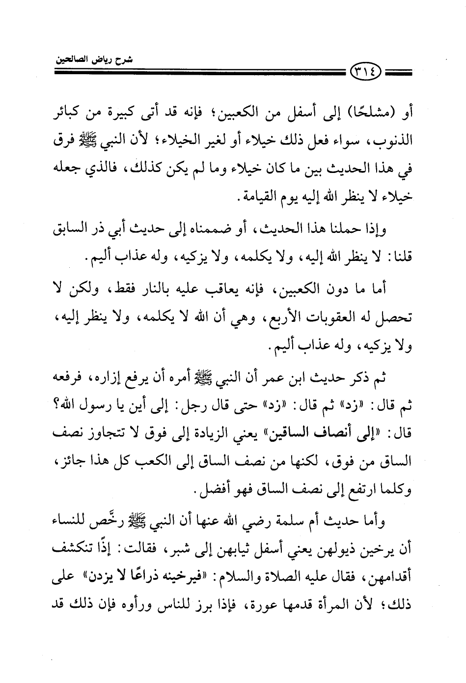 أما ما دون الكعبين، فإنه يعاقب عليه بالنار فقط، ولكن لا تحصل له العقوبات الأربع ثم ذكر حديث ابن عمر أن النبي صلى الله عليه وعلى آله وسلم أمره أن يرفع إزاره، فرفعه ثم قال: زد ثم قال: زد: حتى قال رجل: إلى أين يا رسول الله؟ قال: إلى أنصاف الساقين يعني الزيادة إلى فوق لا تتجاوز نصف الساق من فوق، لكنها من نصف الساق إلى الكعب كل هذا جائز، وكلما ارتفع نصف الساق فهو أفضل.