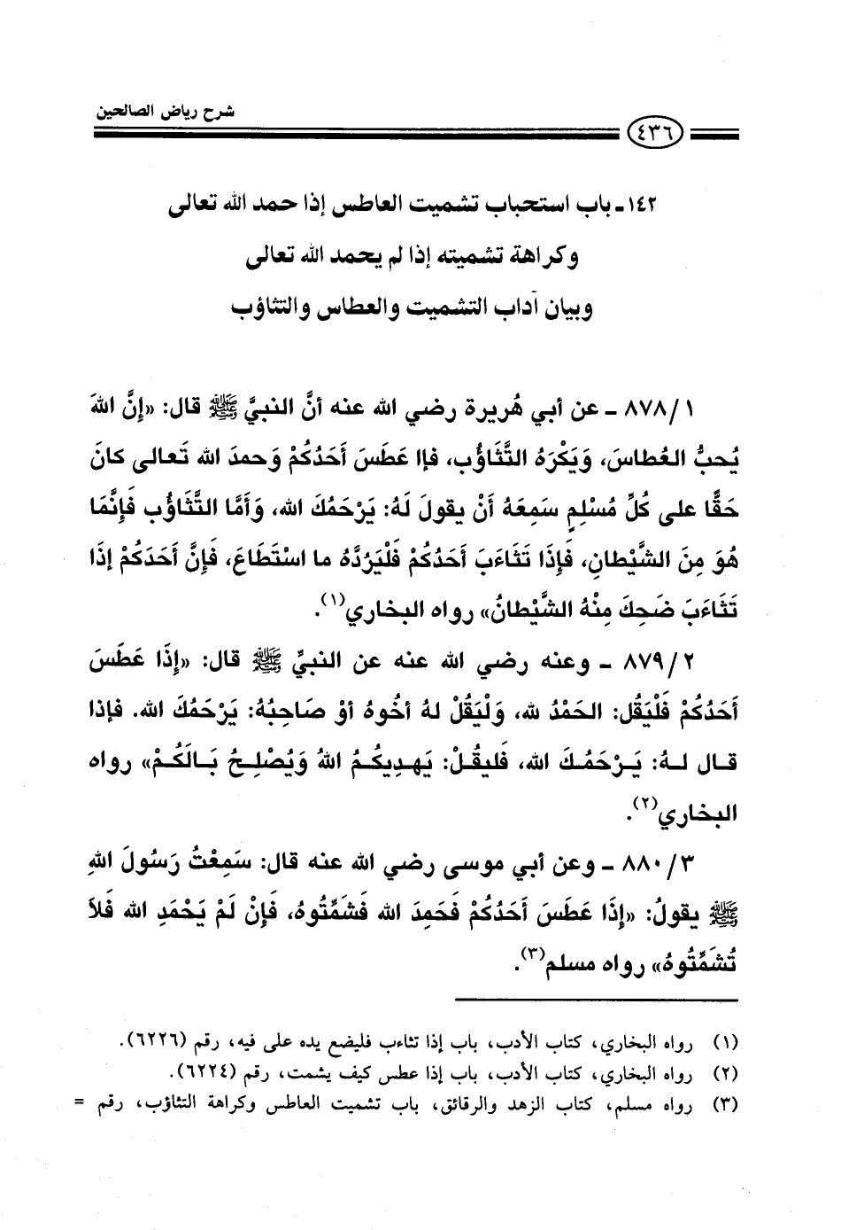 /0L2 باب استحباب تشميت العاطس إذا حمد الله تعالى وكراهية تشميتة إذا لم يحمد الله تعالى وبيان آداب التشميت والعطاس والتثاؤب