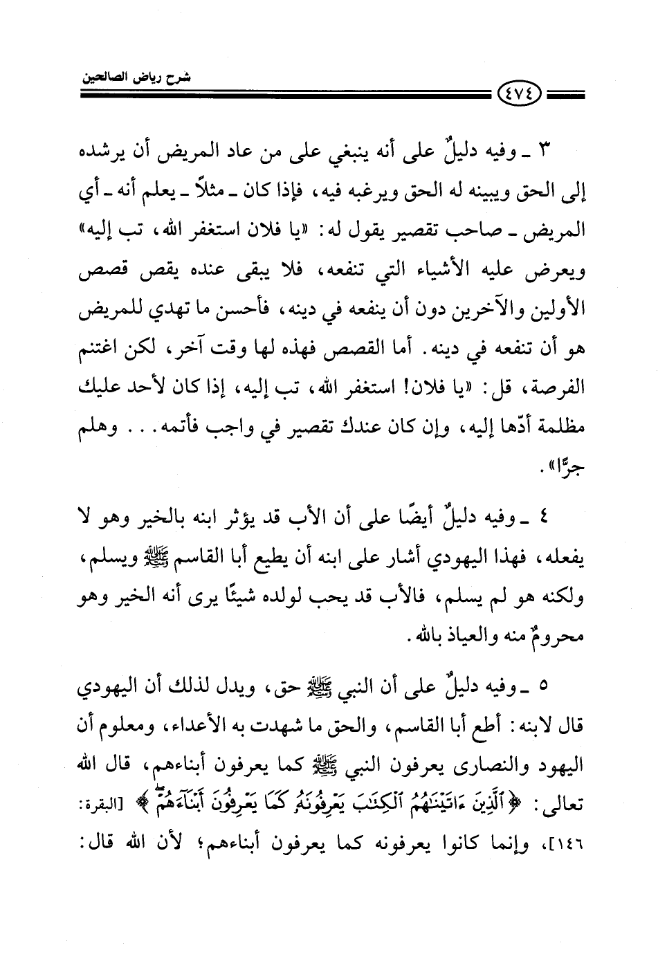 3 - ينبغي على من عاد المريض أن يرشده إلى الحق ويرغبه فيه فإذا كان يعلم أنه أي المريض صاحب تقصير قال له (يا فلان استغفر الله تب إليه) فأحسن ما تهدي للمريض هو أن تنفعه في دينه أما الحكاوي والقصص فلها وقت آخر ...