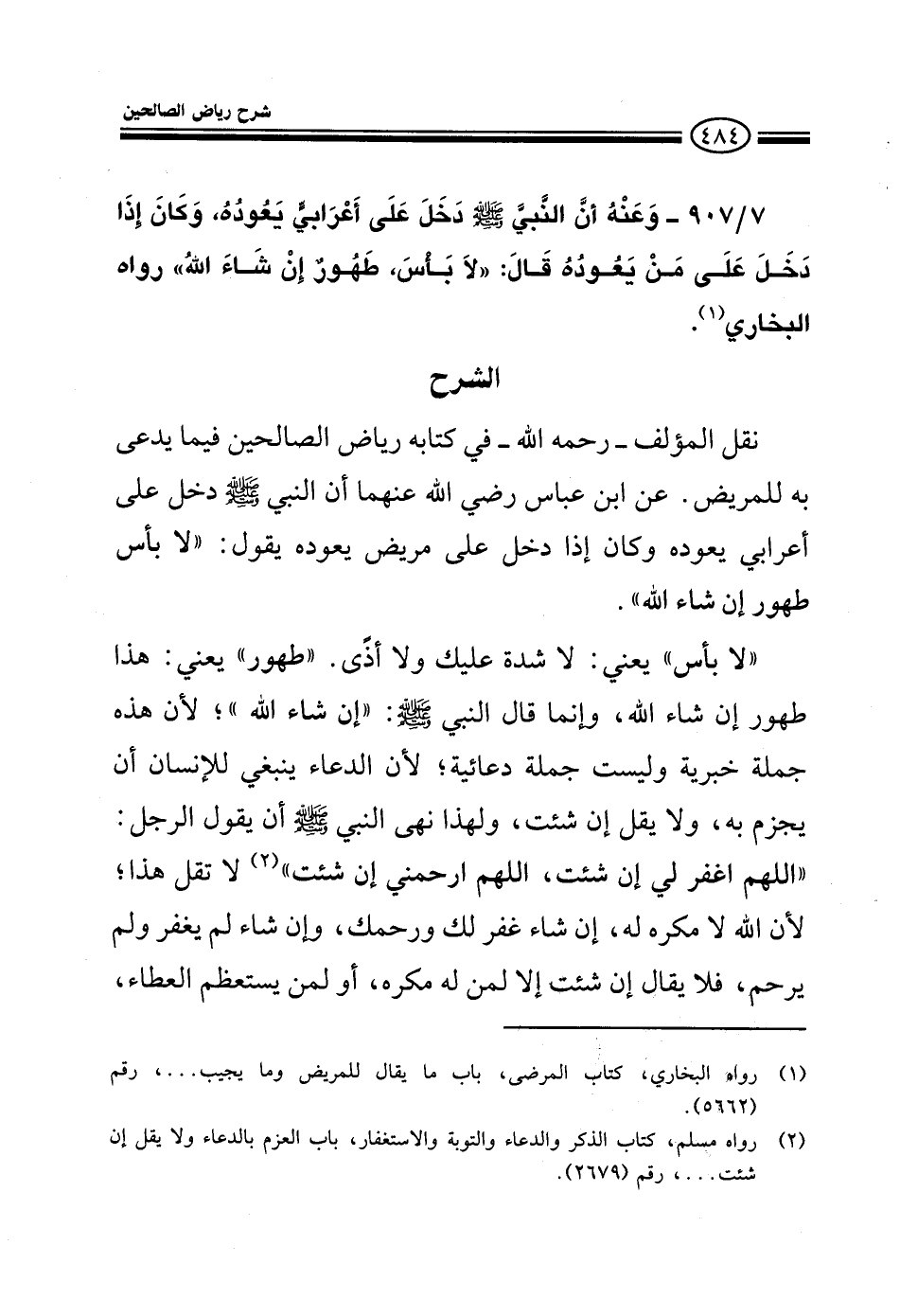 EXهذا الحديث الذي ذكره النووي رحمه الله في كتابه رياض الصالحين باب ما يدعى به للمريض.