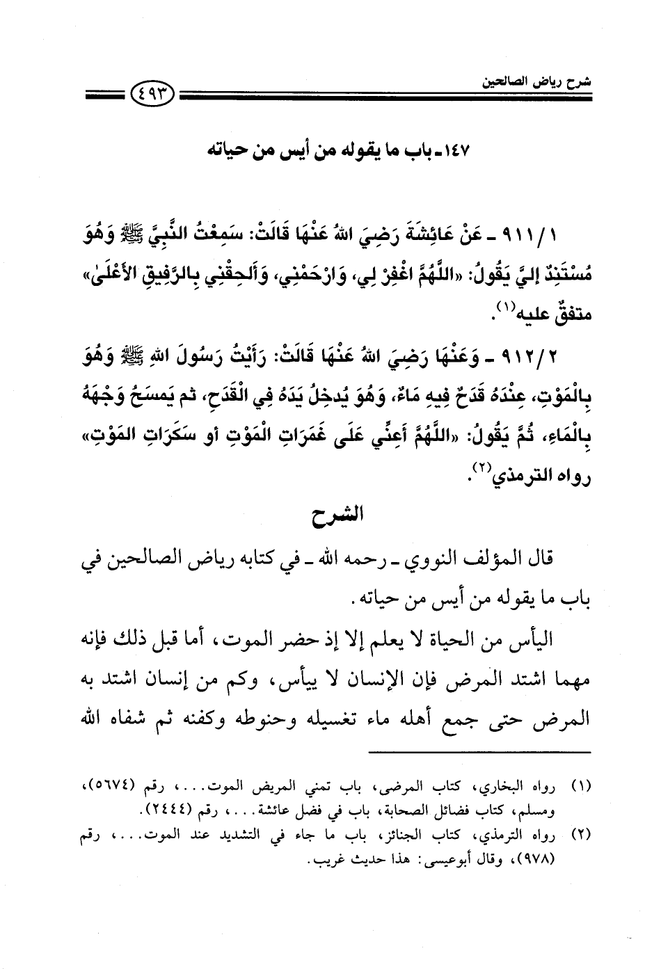 EXقال المؤلف رحمه الله في كتابه رياض الصالحين باب ما يقوله من أيس من حياته.