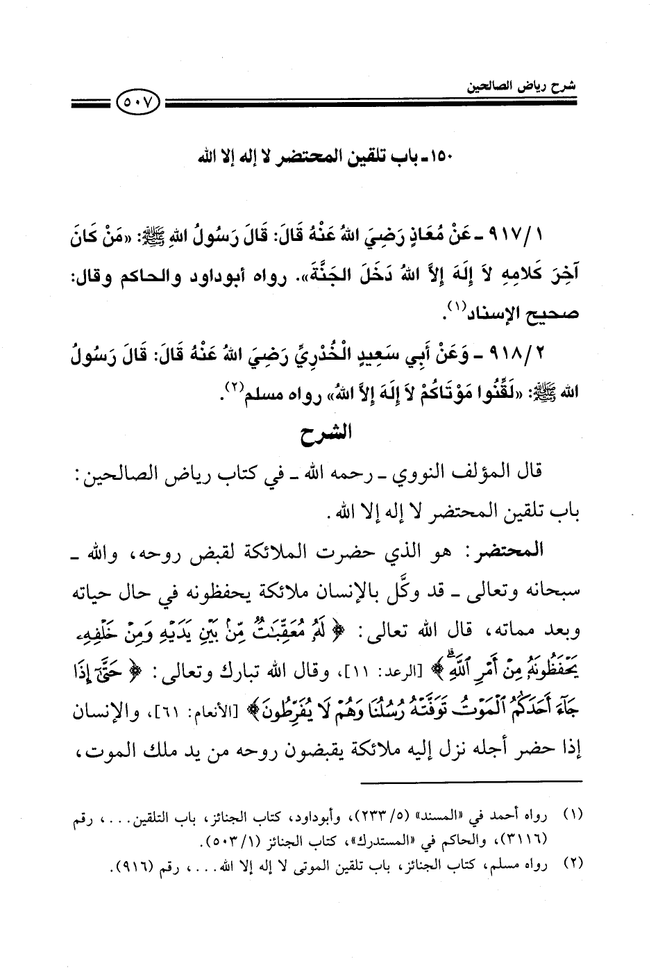 EXقال المؤلف النووي رحمه الله في كتابه رياض الصالحين باب تلقين المحتضر قوله لا إله إلا الله.