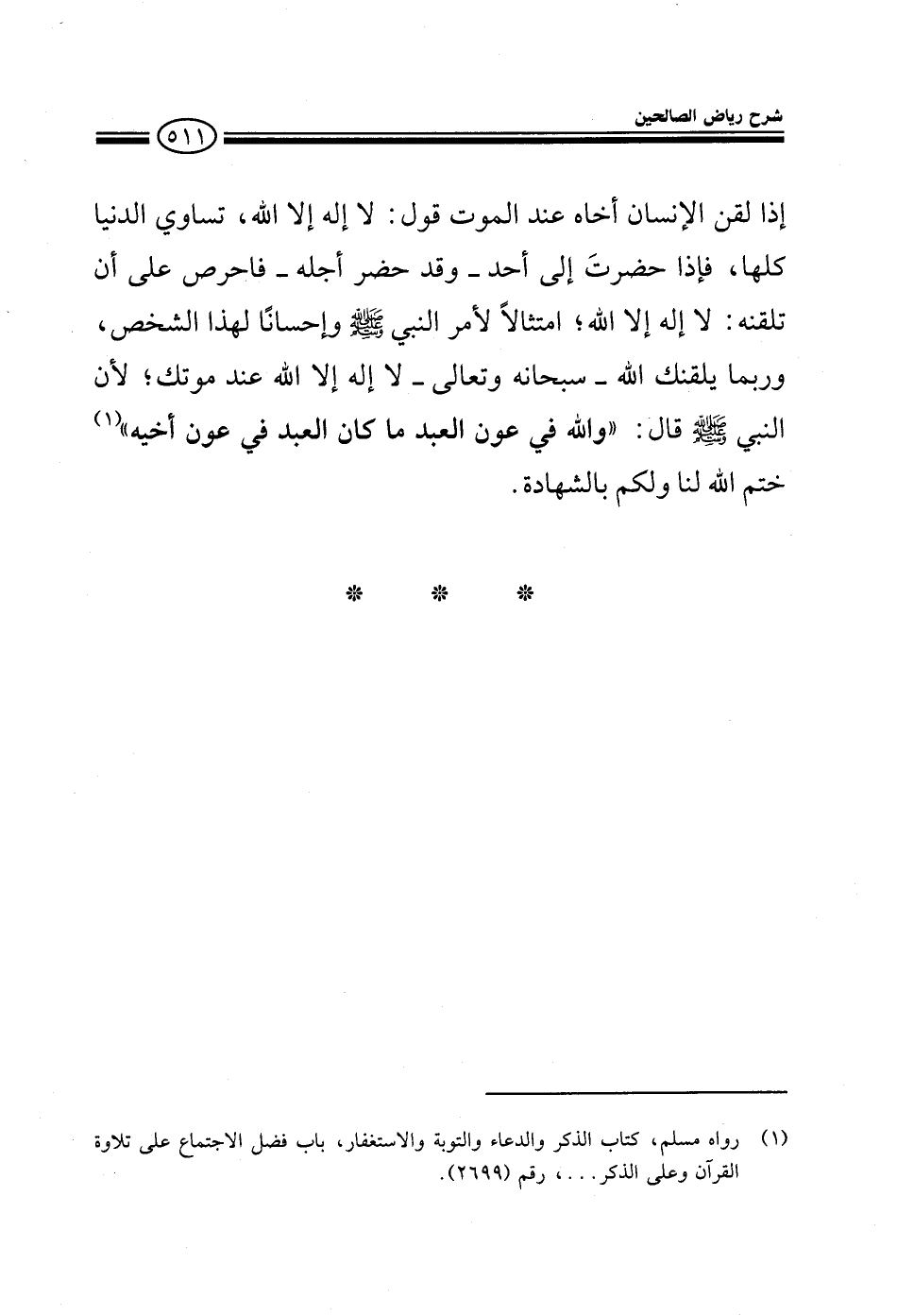 إذا لقنه أخوه عند الموت قول لا إله إلا الله فهذه تساوي الدنيا كلها فإذا حضرت أحدا وهو يحتضر فاحرص على تلقينه لا إله إلا الله امتثالا لأمر النبي صلى الله عليه وسلم وإحسانا لهذا الشخص وربما يلقنك الله سبحانه وتعالى عند موتك لأن النبي صلى الله عليه وسلم قال والله في عون العبد مادام العبد في عون أخيه ختم الله لنا ولكم بالشهادة