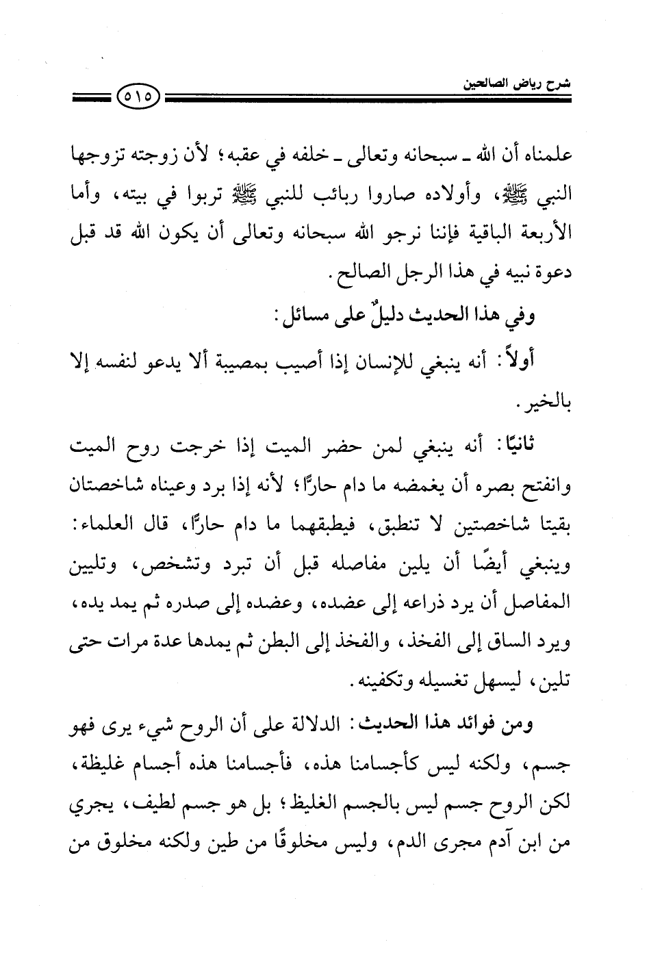وفي هذا الحديث دليل على مسائل: 1 - أنه ينبغي للإنسان إذا أصيب بمصيبة ألا يدعو لنفسه إلا بالخير.