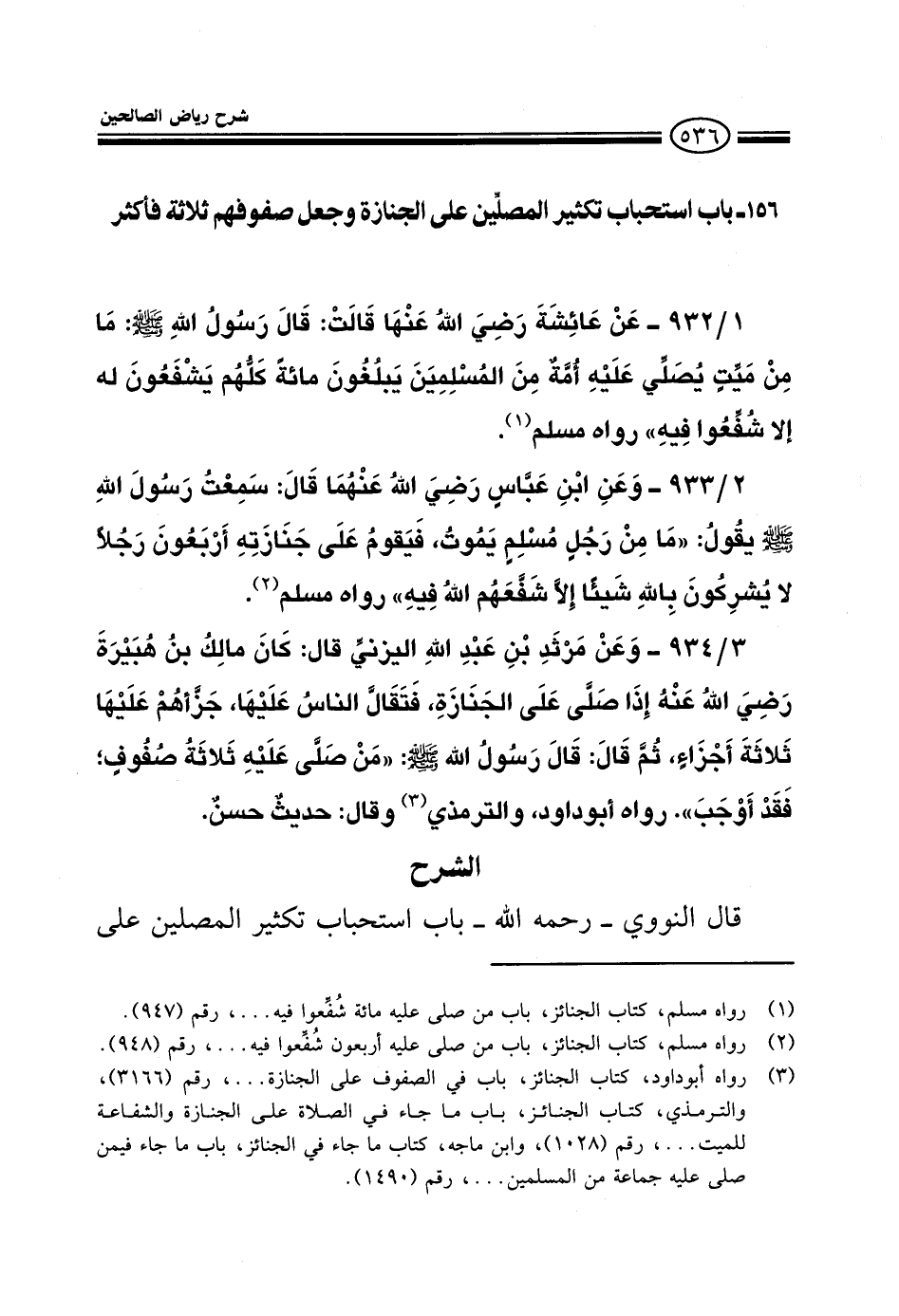 EXقال النووي رحمه الله باب استحباب تكثير المصلين على