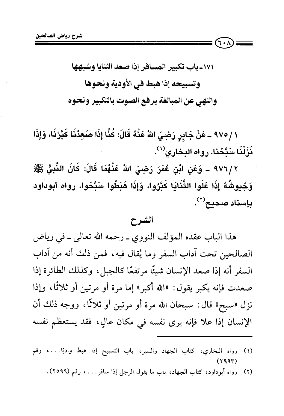 975 - عن جابر رضي الله عنه قال: كنا إذا صعدنا كبرنا، وإذا نزلنا سبحنا رواه البخاري.