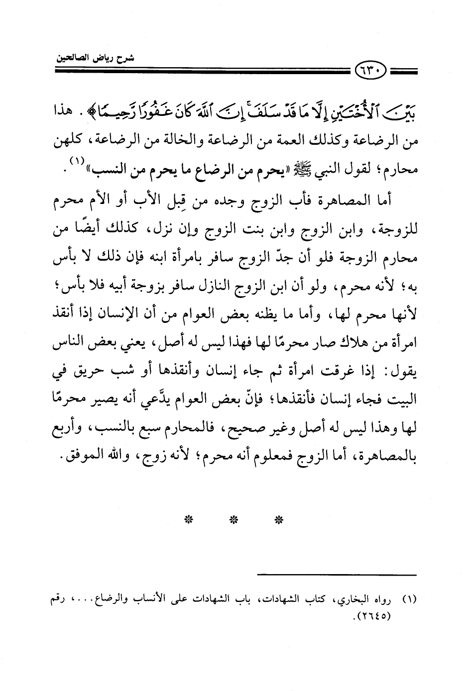 هذا من الرضاعة وكذلك العمة من الرضاعة والخالة من الرضاعة كلها محارم لقول النبي صلى الله عليه وسلم يحرم من الرضاع ما يحرم من النسب أما المصاهرة فأبو الزوج وجده من قبل الأب أو الأم محرم للزوجة وابن الزوج وابن بنت الزوج وإن نزل كذلك أيضا من محارم الزوجة فلو أن جد الزوج سافر بامرأة ابنه فإن ذلك لا بأس به لأنه محرم ولو أن ابن الزوج النابه سافر بزوجة أبيه فلا بأس لأنها محرم له وأما ما يظنه بعض العوام من أن الإنسان إذا أنقذ امرأة من هلاك صار محرما لها فهذا ليس له أصل كان يقول بعض الناس إذا غرقت امرأة ثم جاء إنسان وأنقذها أو شبت حريق بالبيت فجاء إنسان فأنقذها يدعي بعض العوام أنه يصير محرما لها وهذا ليس له أصل وهذا غير صحيح الحارم سبع من النسب وسبع من الرضاع وأربع من المصاهرة أما الزوج فمعلوم أنه محرم لأنه زوج والله الموفق
