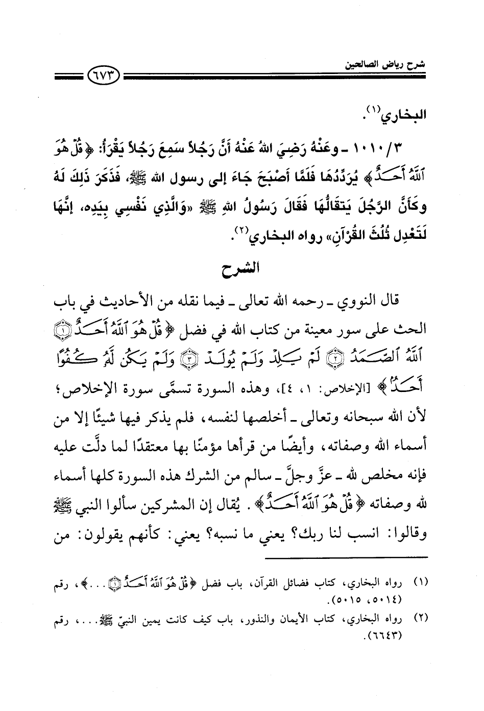 EXقال النووي رحمه الله فيما نقله من الأحاديث في باب الحث على سور معينة في كتاب الله في فضل قل هو الله أحد الله الصمد ...