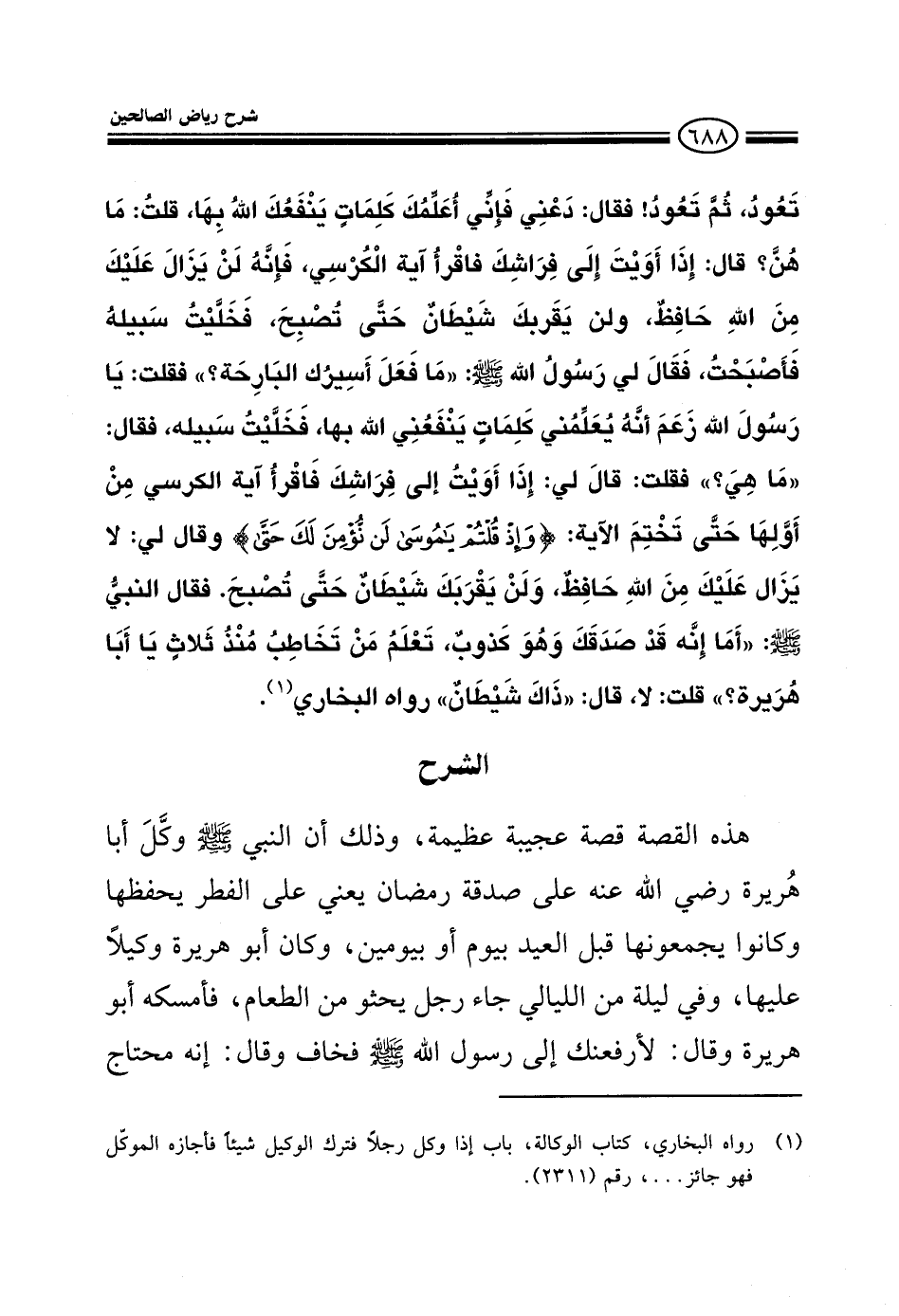 EXهذه القصة قصة عجيبة عظيمة وذلك لأن النبي صلى الله عليه وسلم وكل أبا هريرة رضي الله عنه على صدقة رمضان يعني الفطر يحفظها وكانوا يجمعونها قبل العيد بيوم أو يومين وكان أبو هريرة وكيلا عليها وفي ليلة من الليالي جاء رجل يحثو من الطعام فأمسكه أبو هريرة وقال لأرفعنك إلى رسول الله صلى الله عليه وسلم فخاف وقال إني