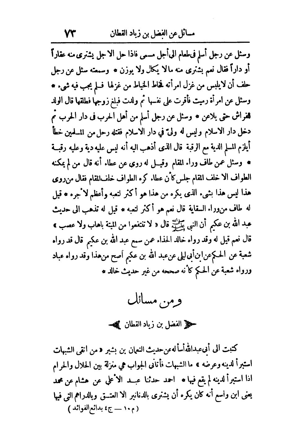 ومن مسائل الفضل بن زياد القطان: