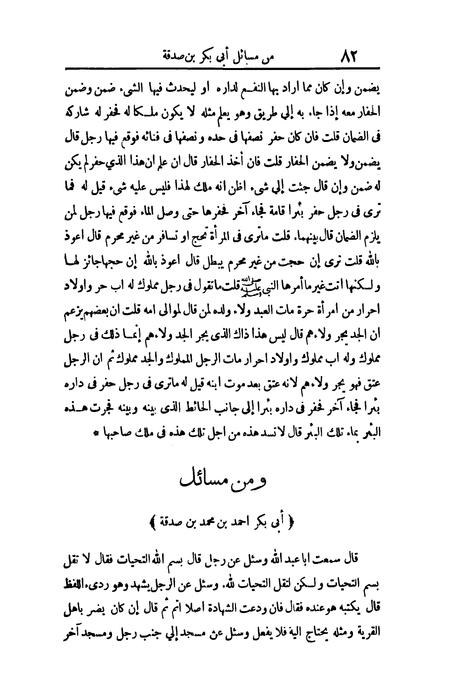 ومن مسائل أبي بكر بن محمد بن صدقة: