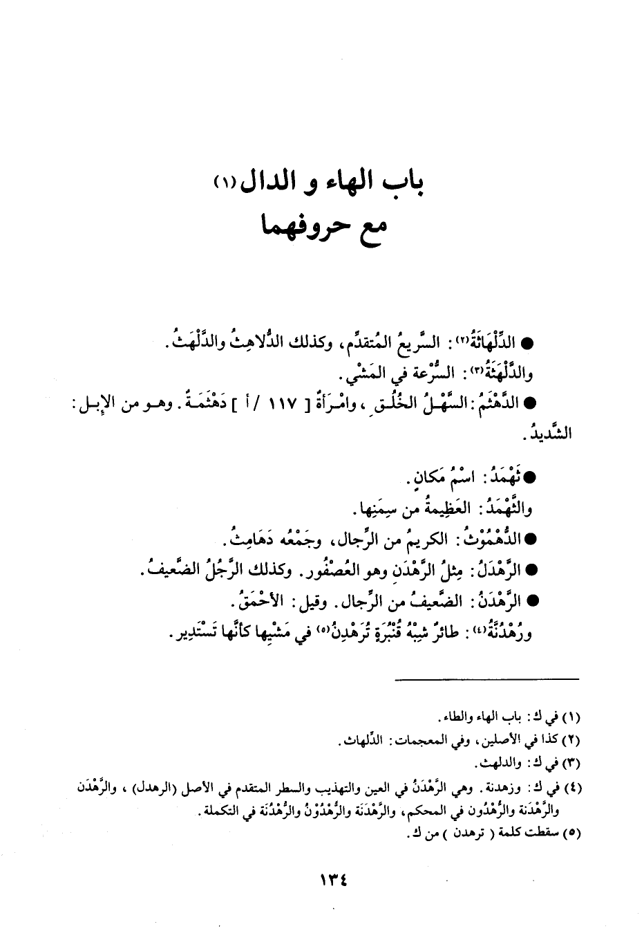 الدلهاثة السريع المتقدم ، وكذلك الدلاهث والدلهث . والدلهثة السرعة في المشي . الدهثم السهل الخلق ، وامرأة 117 أ دهثمة . وهو من الإبل الشديد . ثهمد اسم مكان . والثهمد العظيمة من سمنها . الدهموث الكريم من الرجال . وجمعه دهامث . الرهدل مثل الرهدن وهو العصفور . وكذلك الرجل الضعيف . الرهدن الضعيف من الرجال . وقيل الأحمق . ورهدنة طائر شبه قنبرة ترهدن في مشيها كأنها تستدير .