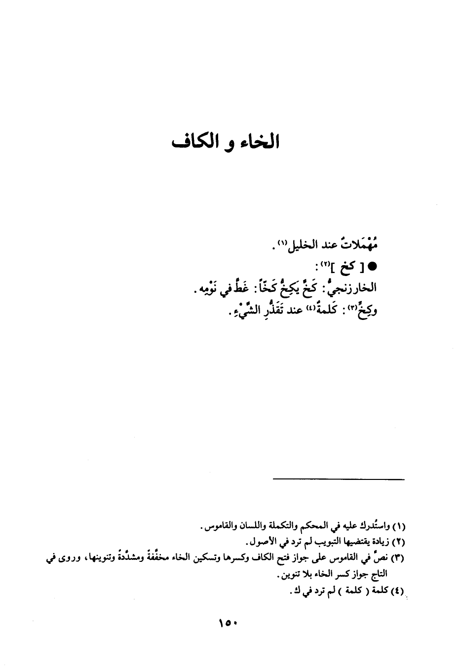 مُهْمَلاتٌ عند الخليل . كخ الخَارزنجيُّ كَخَّ يَكِخُّ كَخَّاً غَطَّ في نَوْمهِ . وكِخٍّ كَلمةٌ عند تَقَذُّرِ الشَّيْءِ .