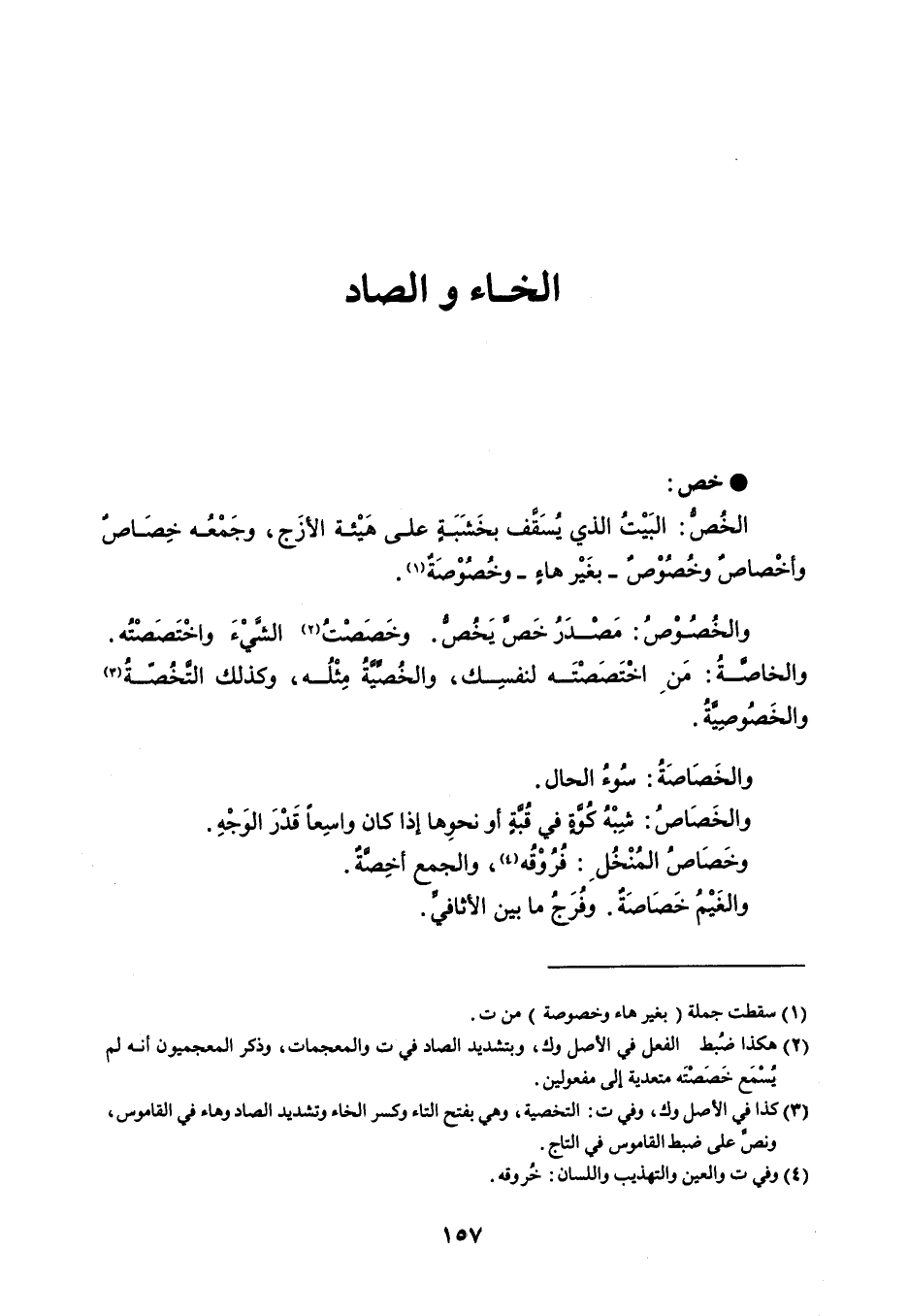 خص الخص البيت الذي يسقف بخشبة على هيئة الأزج ، وجمعه خصاص وأخصاص وخصوص - بغير هاء - وخصوصة . والخصوص مصدر خص يخص . وخصصت الشيء واختصصته . والخاصة من اختصصته لنفسك ، والخصية مثله ، وكذلك التخصة والخصوصية . والخصاصة سوء الحال . والخصاص شبه كوة في قبة أو نحوها إذا كان واسعا قدر الوجه . وخصاص المنخل فروقه ، والجمع أخصة . والغيم خصاصة . وفرج ما بين الأثافي .