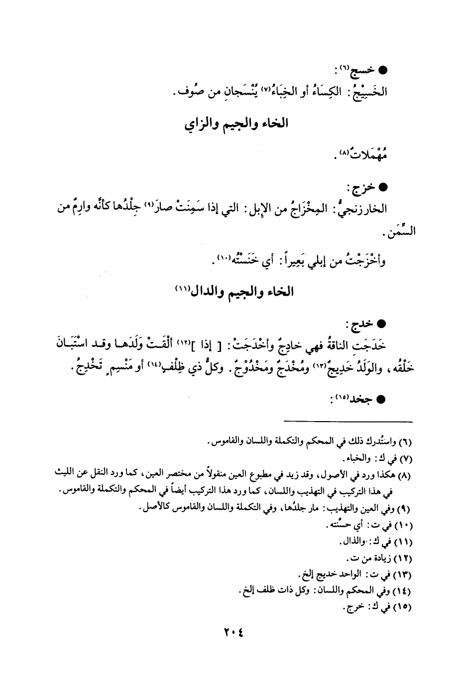 مهملات . خزج الخارزنجي المخزاج من الإبل التي إذا سمنت صار جلدها كأنه وارم من السمن . وأخزجت من إبلي بعيراً أي خنسته .