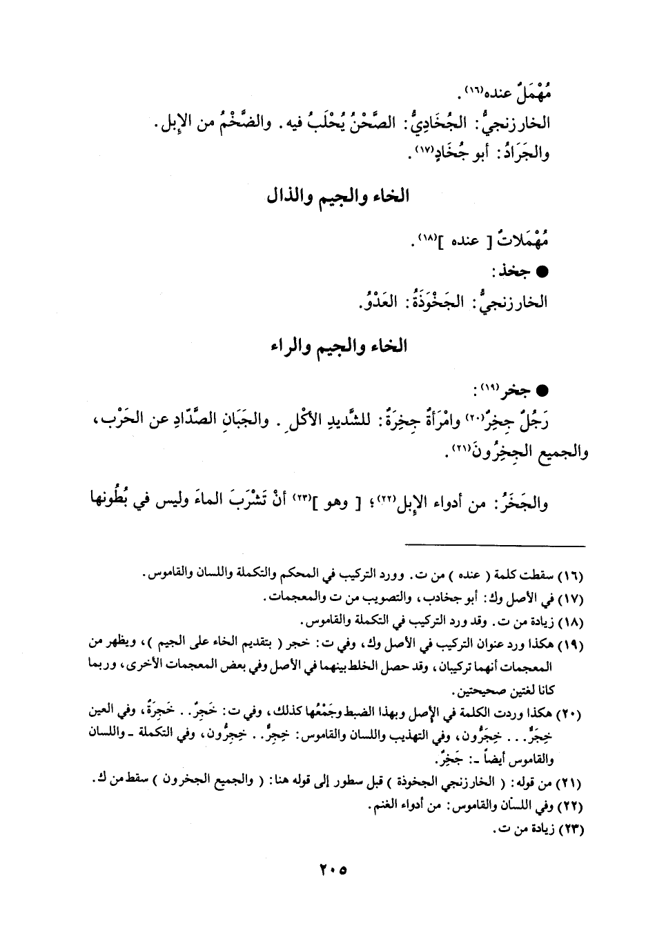 مهمل عنده . الخارزنجي الجخادي الصحن يحلب فيه . والضخم من الإبل . والجراد أبو جخاد .