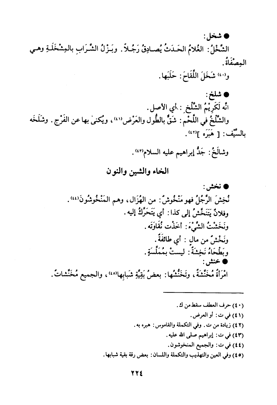 شخل الشخل الغلام الذي يصادق رجلاً . وبزل الشراب بالمشخلة وهي المصفاة . وشخل اللقاح حلبها . شلخ إنه لكريم الشلخ أي الأصل . والشلخ في اللحم شق بالطول والعرض ، ويكنى بها عن الفرج . وشلخه بالسيف هبره . وشالخ جد إبراهيم عليه السلام .