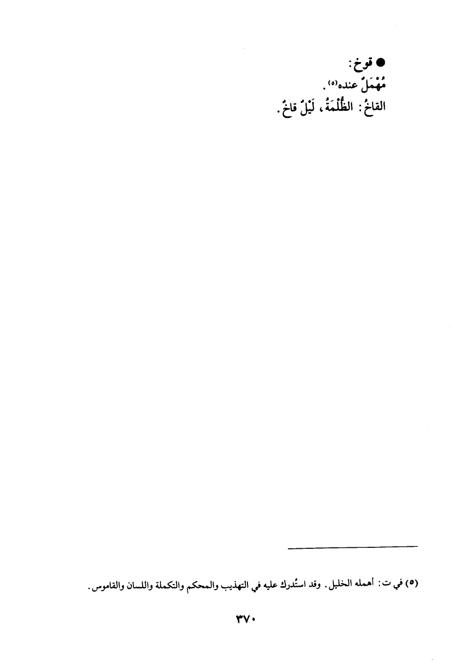 مُهْمَلٌ عنده . القاخُ : الظُّلْمَةُ ، لَيْلٌ قاخٌ .