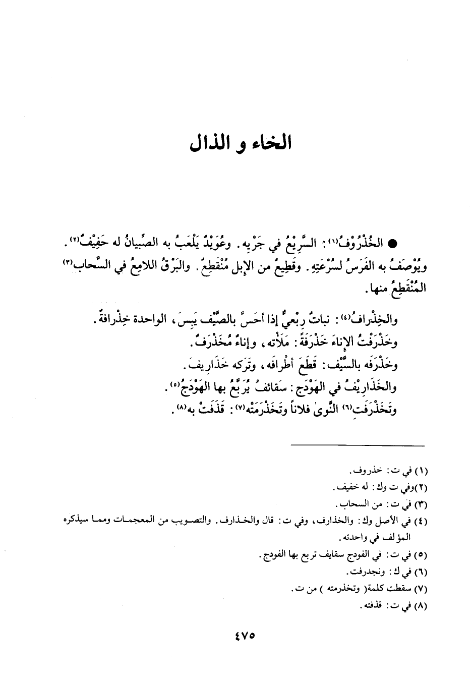 الخُذْرُوْفُ السَرِيْعُ في جَرْيِه . وعُوَيْدٌ يَلْعَبُ به الصِّبيانُ له حَفِيْفٌ . ويُوْصَفُ به الفَرَسُ لسُرْعَتِهِ . وقَطِيع من الإِبل مُنْقَطِعٌ . والبَرْقُ اللامِعُ في السَحاب المُنْقَطِعُ منها . والخِذرافُ نباتٌ رِبْعي إذا أحَسَ بالصيْف يَبِسَ ، الواحدة خِذْرافةٌ . وخَذْرَفْتُ الإناءَ خَذْرَفَةً مَلَأْته ، وإناءٌ مُخَذْرَف . وخَذْرَفَه بالسَيْف : قَطِعَ أطْرافَه ، وتَرَكه خَذَارِيفَ . والخَذَارِيْفُ في الهَوْدج : سَقائفُ يُرَبعُ بها الهَوْدَجُ . وتَخَذْرَفَتِ النَّوى فلاناً وتخذْرَمَتْه : قَذفَت به .