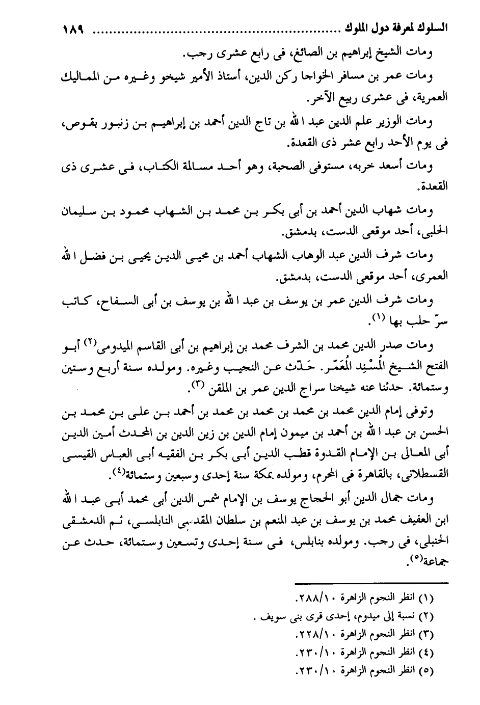 وَمَات الشَّيْخ إِبْرَاهِيم بن الصَّائِغ فِي رَابِع عشرى رَجَب. وَمَات عمر بن مُسَافر الخواجا ركن الدّين أستاذ الْأَمِير شيخو وَغَيره من المماليك العمرية فِي عشرى ربيع الآخر. وَمَات الْوَزير علم الدّين عبد الله بن تَاج الدّين أَحْمد بن إِبْرَاهِيم بن زنبور بقوص فِي يَوْم الْأَحَد رَابِع عشر ذِي الْقعدَة. وَمَات أسعد خربه مُسْتَوْفِي الصُّحْبَة وَهُوَ أحد مسالمة الْكتاب فِي عشرى ذِي الْقعدَة. وَمَات شهَاب الدّين أَحْمد بن أبي بكر بن مُحَمَّد بن الشهَاب مَحْمُود بن سُلَيْمَان الْحلَبِي أحد موقعي الدست بِدِمَشْق. وَمَات شرف الدّين عبد الْوَهَّاب الشهَاب أَحْمد بن محيى الدّين يحيى بن فضل الله الْعمريّ أحد موقعي الدست بِدِمَشْق. وَمَات شرف الدّين عمر بن يُوسُف بن عبد الله بن يُوسُف بن أبي السفاح كَاتب سر حلب بهَا. وَمَات صدر الدّين مُحَمَّد بن الشّرف مُحَمَّد بن إِبْرَاهِيم بن أبي الْقَاسِم الْمَيْدُومِيُّ أَبُو الْفَتْح الشَّيْخ الْمسند المعمر. حدث عَن النجيب وَغَيره. ومولده سنة أَربع وَسِتِّينَ وسِتمِائَة. حَدثنَا عَنهُ وَتُوفِّي إِمَام الدّين مُحَمَّد بن مُحَمَّد بن مُحَمَّد بن مُحَمَّد بن أَحْمد بن عَليّ بن مُحَمَّد بن الْحسن بن عبد الله بن أَحْمد بن مَيْمُون إِمَام الدّين بن زين الدّين بن الْمُحدث أَمِين الدّين أبي الْمَعَالِي بن الإِمَام الْقدْوَة قطب الدّين أبي بكر بن الْفَقِيه أبي الْعَبَّاس الْقَيْسِي الْقُسْطَلَانِيّ بِالْقَاهِرَةِ فِي الْمحرم ومولده بِمَكَّة سنة إِحْدَى وَسبعين وسِتمِائَة وَمَات جمال الدّين أَبُو الْحجَّاج يُوسُف بن الإِمَام شمس الدّين أبي مُحَمَّد أبي عبد الله ابْن الْعَفِيف مُحَمَّد بن يُوسُف بن عبد الْمُنعم بن سُلْطَان الْمَقْدِسِي النابلسي ثمَّ الدِّمَشْقِي الْحَنْبَلِيّ فِي رَجَب. ومولده بنابلس فِي سنة إِحْدَى وَتِسْعين وسِتمِائَة حدث عَن جمَاعَة.