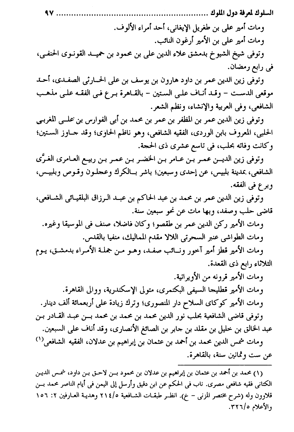 وَمَات أَمِير عَليّ بن طغريل الإيغاني أحد أُمَرَاء الألوف. وَمَات أَمِير عَليّ بن الْأَمِير أرغون النَّائِب. وَتُوفِّي شيخ الشُّيُوخ بِدِمَشْق عَلَاء الدّين عَليّ بن مَحْمُود بن حميد القونوي الْحَنَفِيّ فِي رَابِع رَمَضَان. وَتُوفِّي زين الدّين عمر بن دَاوُد هَارُون بن يُوسُف بن عَليّ الْحَارِثِيّ الصَّفَدِي أحد موقعي الدست - وَقد أناف على السِّتين - بِالْقَاهِرَةِ برع فِي الْفِقْه على مَذْهَب الشَّافِعِي وَفِي الْعَرَبيَّة والإنشاء ونظم الشّعْر. وَتُوفِّي زين الدّين عمر بن المظفر بن عمر بن مُحَمَّد بن أبي الفوارس بن عَليّ المغربي الْحلَبِي الْمَعْرُوف بِابْن الوردي الْفَقِيه الشَّافِعِي وَهُوَ ناظم الْحَاوِي وَقد جَاوز السِّتين وَكَانَت وَفَاته بحلب فِي تَاسِع عشرى ذِي الْحجَّة. وَتُوفِّي زين الدّين عمر بن عَامر بن الْخضر بن عمر بن ربيع العامري الغري الشَّافِعِي. بِمَدِينَة بلبيس عَن إِحْدَى وَسبعين بَاشر بالكرك وعجلون وقوص وبلبيس وبرع فِي الْفِقْه. وَتُوفِّي زين الدّين عمر بن مُحَمَّد بن عبد الْحَاكِم بن عبد الرَّزَّاق البلقيائي الشَّافِعِي قَاضِي حلب وصفد وَبهَا مَاتَ عَن نَحْو سبعين سنة. وَمَات الْأَمِير ركن الدّين عمر بن طقصو وَكَانَ فَاضلا صنف فِي الموسيقا وَغَيره. وَمَات الطواشي عنبر السحرتي اللالا مقدم المماليك منفياً بالقدس. وَمَات الْأَمِير قطز أَمِير آخور ونائب صفد وَهُوَ من جملَة الْأُمَرَاء بِدِمَشْق يَوْم الثُّلَاثَاء رَابِع ذِي الْقعدَة وَمَات الْأَمِير قرونه من الأويراتية. وَمَات الْأَمِير قطليجا السيفي البكتمري مُتَوَلِّي الْإسْكَنْدَريَّة ووالي الْقَاهِرَة. وَمَات الْأَمِير كوكاي السِّلَاح دَار المنصوري وَترك زِيَادَة على أَرْبَعمِائَة ألف دِينَار. وَتُوفِّي قَاضِي الشَّافِعِيَّة بحلب نور الدّين مُحَمَّد بن مُحَمَّد بن مُحَمَّد بن عبد الْقَادِر بن عبد الْخَالِق بن خَلِيل بن مقلد بن جَابر بن الصَّائِغ الْأنْصَارِيّ وَقد أناف على السّبْعين. وَمَات شمس الدّين مُحَمَّد بن أَحْمد بن عُثْمَان بن إِبْرَاهِيم بن عَدْلَانِ الْفَقِيه الشَّافِعِي عَن سِتّ وَثَمَانِينَ سنة بِالْقَاهِرَةِ.