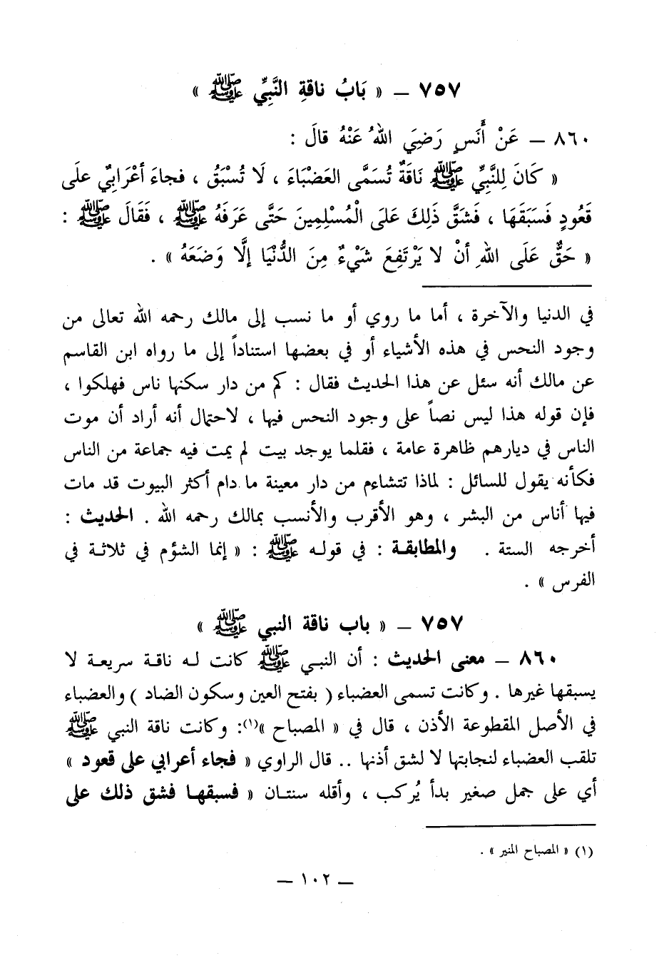 757 - " بَابُ ناقةِ النَّبِيِّ - صلى الله عليه وسلم - "