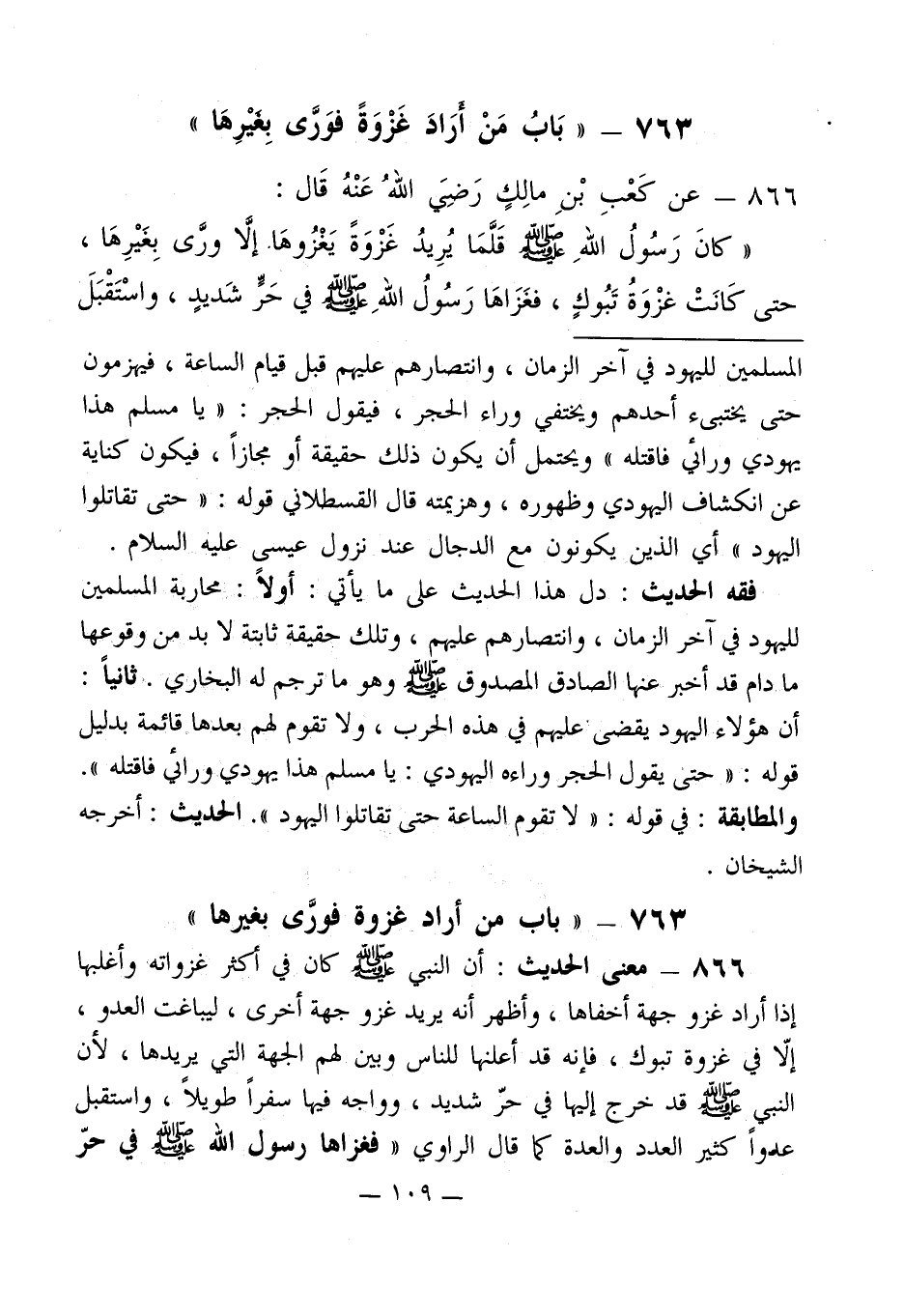 763 - " باب من أراد غزوة فورَّى بغيرها "