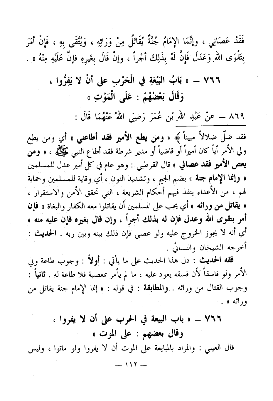 766 - "بَابُ البَيْعَةِ في الْحَرْبِ على أنْ لا يَفرُّوا، وَقَالَ بَعضهُمْ: عَلَى الْمَوْتِ"