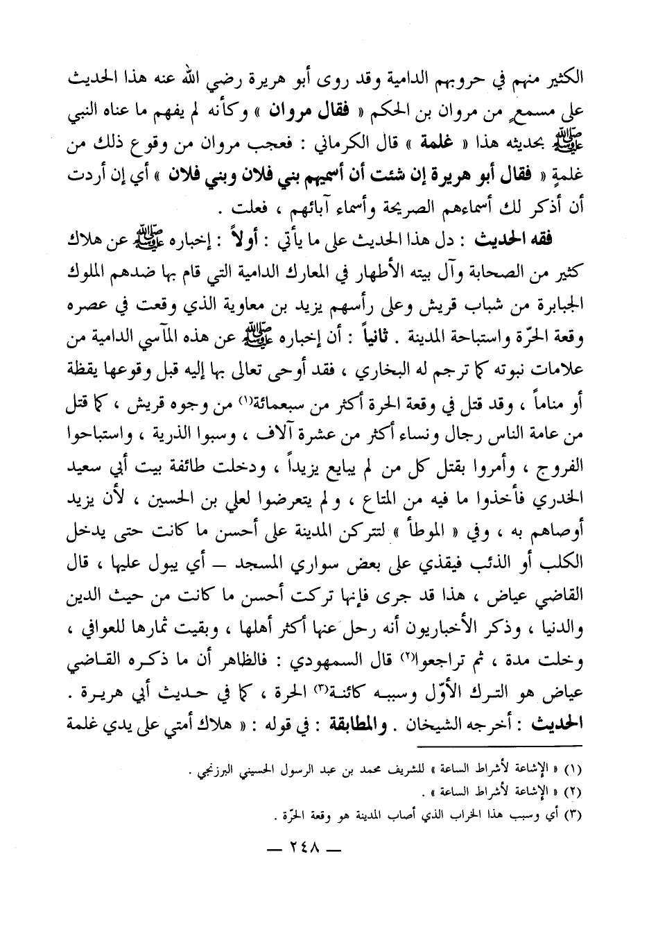 (¬1) " الإشاعة لأشراط الساعة " للشريف محمد بن عبد الرسول الحسيني البرزنجي.