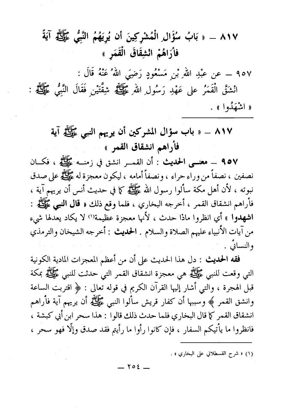 817 - " بَابُ سؤَالِ الْمُشركِينَ أن يُرِيَهُمُ النبي - صلى الله عليه وسلم - آيَةً فأرَاهُمْ انشِقَاقَ الْقَمَرِ "